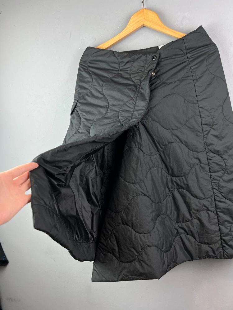 Woolrich Black Silky Quilted Nylon Medium Wrap Skirt