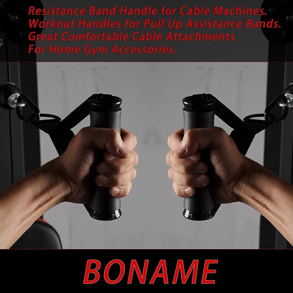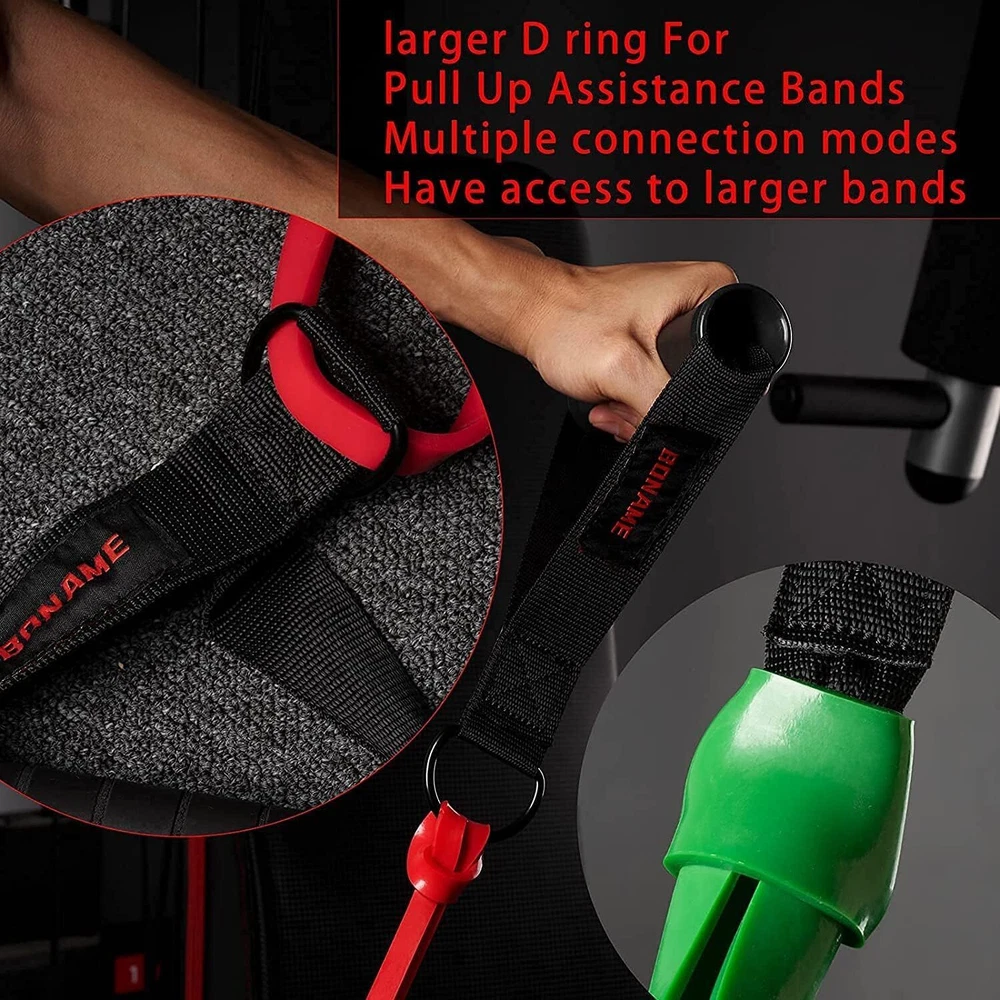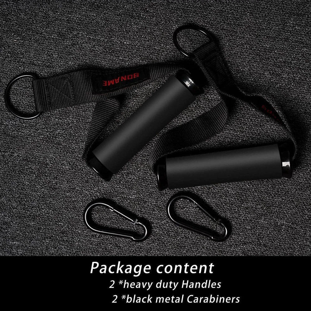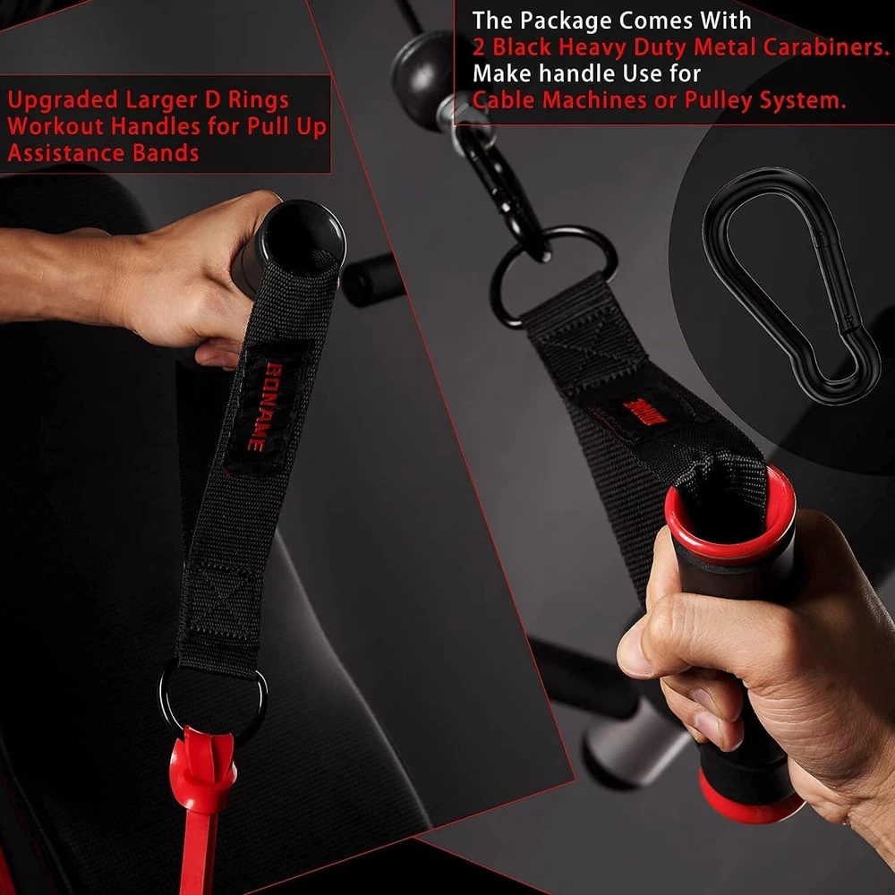Working Out Handle Gym Equipment for Strength Trainer, Pull Up Home Gym for Pilates Yoga (Black) UPGRADED LARGER D RING : We designed a larger D ring for this Resistance Band Handle . allows you to use larger bands that offer 100lbs (1.77 inches wide bands ) of Pull Up Assistance Bands FEELS SUPER COMFORTABLE EXERCISE HANDLES: The surface of the handle is made of soft sponge material,Feel comfortable. CABLE MACHINE ATTACHMENT HANDLES:Heavy duty rings easily connect to your CABLE MACHINE , Pulley System Gym or exercise bands. They withstand a lot of weight, too. Ultra-lightweight Resistance Band Handle :Very easy to carry, you put the handle in your backpack at will, it will not add extra weight to you,You can keep up with your workout progress anytime, anywhere ULTRAL HEAVY DUTY Metal Hooks : The package comes with 2 black Heavy Duty metal Carabiners , Make it easier for you to connect the handle to Cable Machines or Pulley System WARRANTY: We offer a 1 year, no-hassle warranty. If you have any issues, contact us and We will serve you.