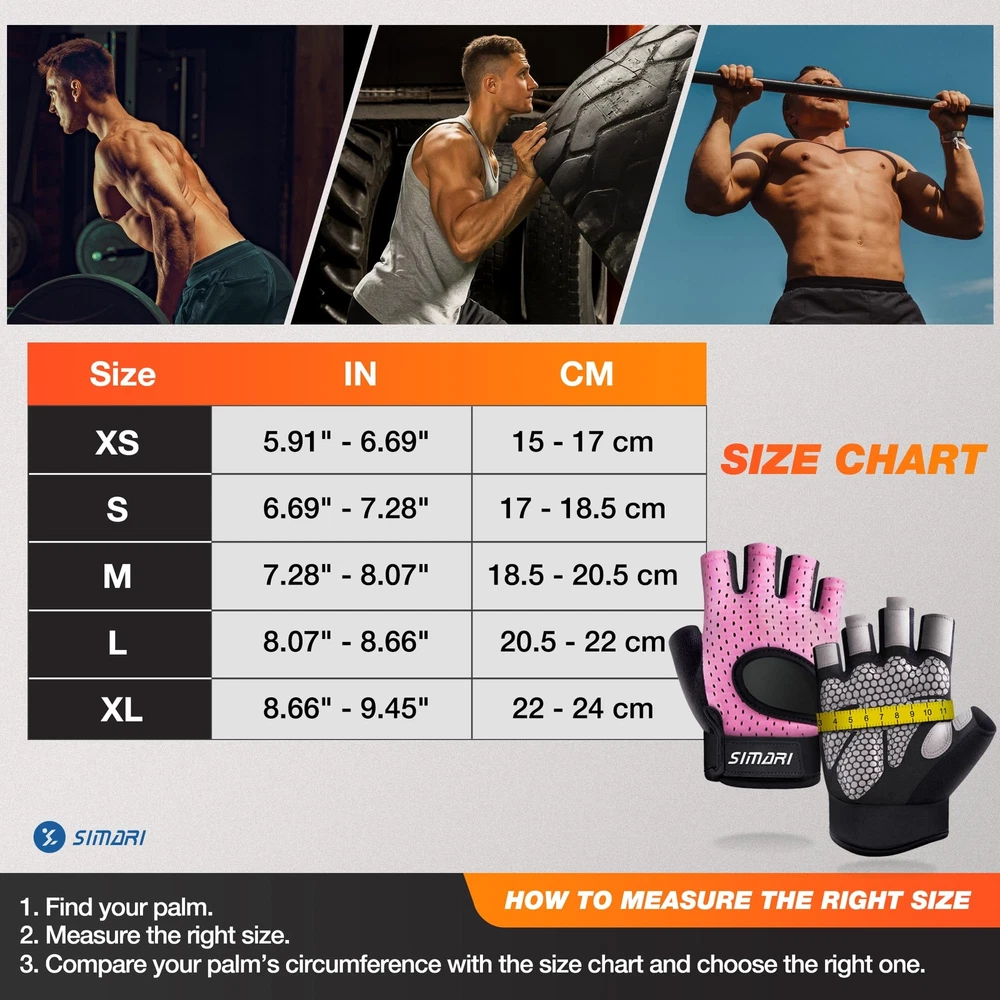 WORKOUT GLOVES The workout gloves have been upgraded. Different from other common gloves, the gloves are made of Microfiber which is the better material. The gloves have a lot of humanized design to improve the use of experience. We believe you will love this product! Interpretation of Materials Microfiber: The microfiber has high wearability. There are a lot of gloves made of mesh on the market, it will be easy to be destroyed. But the gloves are not, the palm of gloves is made of microfiber which can reduce the friction of the appliance to the user's palm. Humanized Design ☆Sturdy wrists protection structure ☆Reusable Wristband ☆Towels on the Thumb ☆Soft sponge pads ☆Breathable and Lightweight. ☆Easy to put on and take off. Selection Guidance (1)Measure the circumference of your palm; (2)your size of hand with the data of Gloves; (3)Choose the nearest size. Tips of Cleaning (1)Preferred washed by hand. You only need to soak the gloves with soap, then rub and wash, dry it in the shade. (2)If washed by machine, it is better to put the gloves into the laundry bag to reduce the likelihood of deformation. (3)Never use hot water, bleach, and other strong acid wash, and do not bask in the sun, because the material organization will be destroyed easily, which will cause pilling, fabric loose and gloves deformation and so on. 【Palm Protection】Workout Gloves with a high-density sponge Pad cover the whole palms, which can buffer the impact of fitness equipment, maintain a soft comfort feel, protect your hands and your fingers from calluses and blisters, and effectively reduce during gym training. 【Ventilated & Comfort】Made of lightweight and breathable elastic fabrics, the open-back design of the exercise gloves can circulate and disperse heat, making perfect breathability and freedom during the workout. weight lifting gloves have great flexibility, breathability, comfort, and fit. PERFECT FIT for Weightlifting, Exercise, Fitness, Gym Training, Bicycle and General Workout. The short wristband is suitable for wearing a fitness watch to detect your sports conditions. 【Extra Grip & Adjustable Wrist】Attached with honeycomb anti-slip silica on palm, provide a stronger grip, ease hands numbness and prevent wrists from hurting. Designed with an adjustable wrist wraps straps, the work out gloves provide the possibility to adjust personal comfort. The great anti-slip palm design is perfect for most fitness in the gym or at home, and the nice cushion ability can also be used in cycling. 【Durable & Convenient】Made of Microfiber materials, which is a high-quality material that has excellent abrasion resistance and high colorfastness. The pull buckles on the fingertips make the weightlifting gloves easily take off, and the soft terry cloth on the thumb allows you to wipe away sweat after intense workouts. Every design is to bring convenience to fitness lovers. 【Muti Application】The Sport Gloves are ideal for men and women for weight lifting, gym training, lifting, exercise, bike, biking, pull ups, dumbbells, deadlift, riding, and rowing. And you can use them as support gloves, training grips, gym weights equipment, bar weights for women men, with the aerobics ball, doing cross-training, and General workouts.