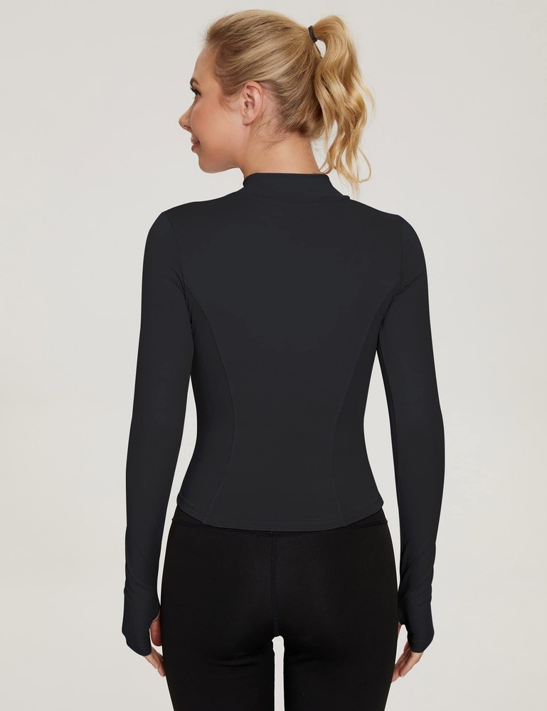 Women's Cropped Workout Jacket Zip Up Running Athletic Outwear Slim Fit Long Sleeve Yoga Top SPORTSWEAR FABRIC:The fabric is super supportive, soft, light weight and stretchy,This active wear feel like a second skin,comfortable and smooth,ensuring you don't feel restricted while you train FASHION CROPPED DESIGN:This is a really nice fitting and slim cut workout jacket.The waist line perfectly shows the figure.It’s high stretchy helps to sculpt your body,make you looks more cute and attrictive. FULL ZIP WITH THUMB HOLES: Detached zip-up jacket is easier for you to put on or take off during exercise,blocks the sun with the popped collar and long sleeves and they also help you to keep warm in cold weather. COLLOCATIONS:Our workout tops goes perfect with Leggings, Sports Skirts,Shorts or Casual Cargo Joggers. MULTI-OCCASION:This women's jacket is the perfect choice for running ,yoga and workouts, and it is going to be the new trend for street wear.