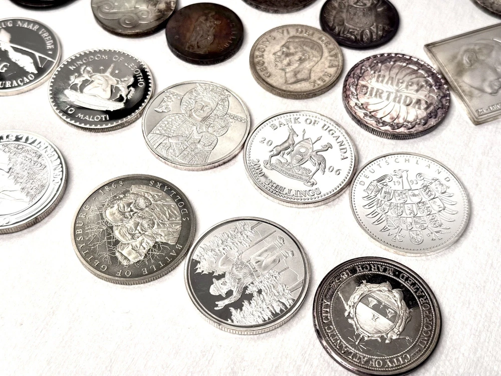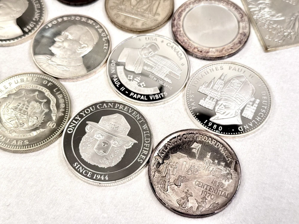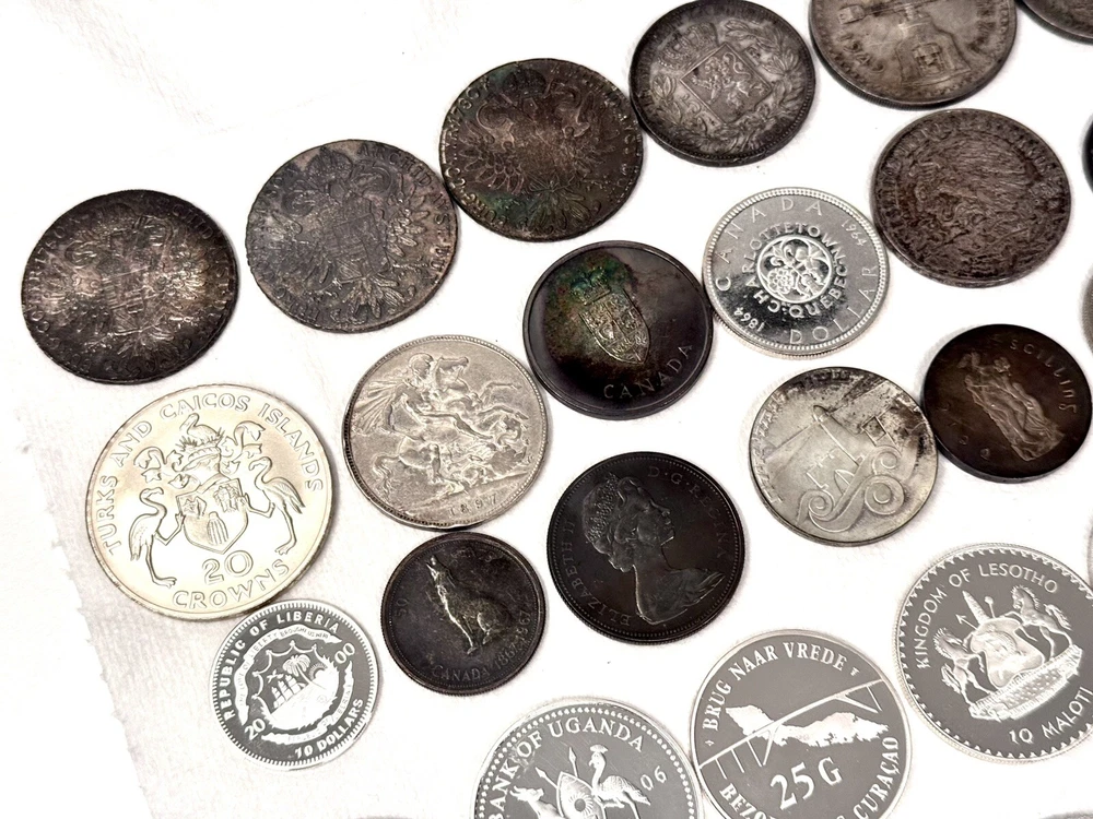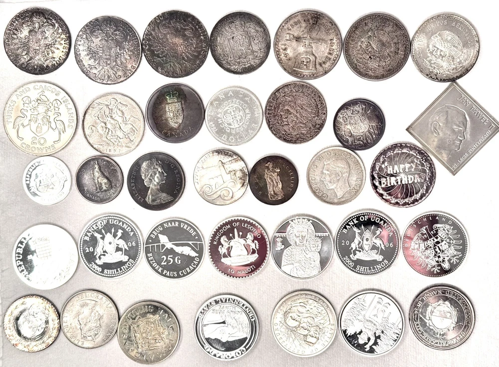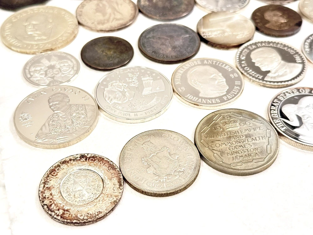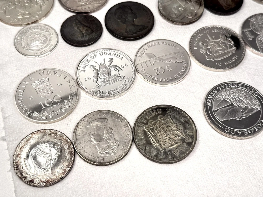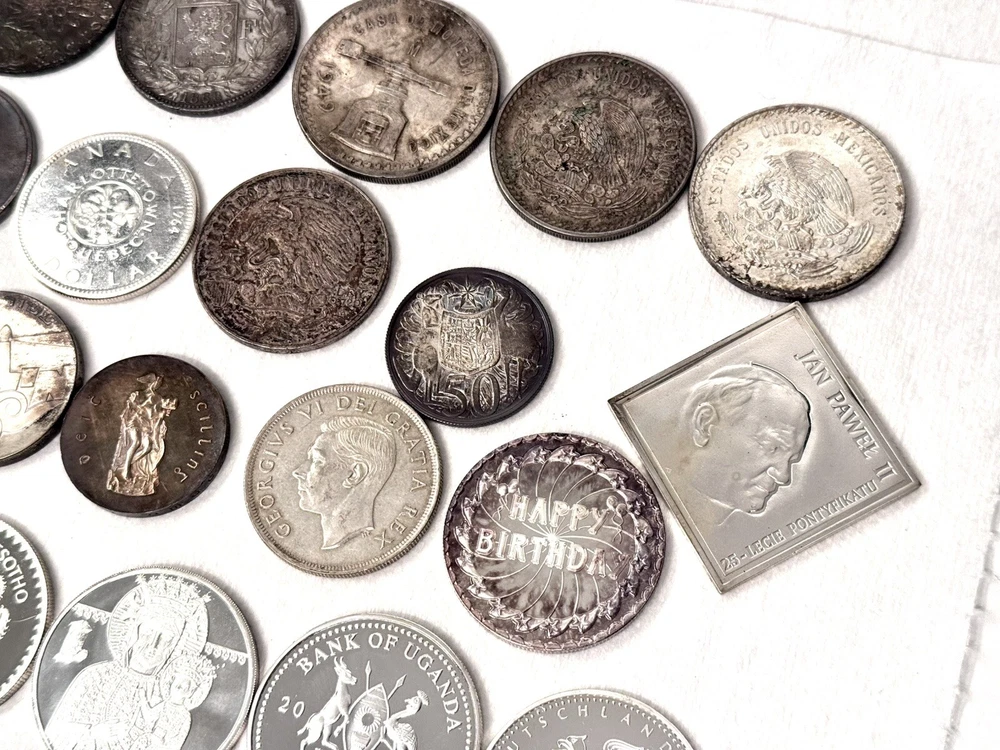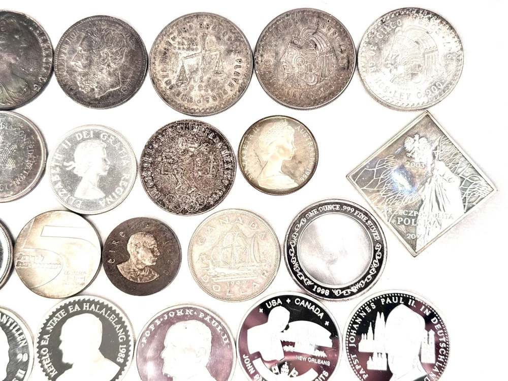 Disclaimer - Buyer must read: Do not message us to make an offer - WE DO NOT ACCEPT OFFERS ON AUCTIONS If you plan on canceling as soon as you win an auction, negative feedback will be left and you will be blocked from purchasing items from us in the future. Do not bid if you do not plan on paying, check your import fees and taxes BEFORE bidding. We list all coins as bullion -- ebay automatically charges tax based on your states law and we have zero control over this nor can we remove it as it is not an option as a seller. If you are wrongly charged tax, contact Ebay and they will remove it. We ship FEDEX or UPS to US only : NO PO boxes, NO USPS, NO international, NO exceptions . We have 20 years on Ebay with thousands of transactions, this is the best way to ensure your item will arrive to you safely. 3 business days handling time. Signature required over $200. Tracked, insured and professionally packed to ensure your item will arrive to you safely. You will be receiving the exact item that is in the photographs and described below . Item Description: For sale is a lot of mixed coins including .999, .925 sterling, .833, .800 and possibly more. NOT ALL COINS ARE SILVER including a 5 shilling coin from Jamaica, Colorado and Smokey the Bear coin. Coins are from all over the world, some currencies and some are commemorative. Pope coins, Israel coins, Ireland, England, USA, Canada, Turks and Caicos. Some are marked silver and some are not. Total weight is 31oz. NOT ALL COINS ARE SILVER. Though many of the currencies are and many look and feel like silver even though they aren't stamped. Sold as is. Buyer is responsible for viewing our clear photos to determine condition themselves and asking any questions BEFORE bidding. Check our profile , we have many more coin lots for sale: gold coins , silver coins, Morgan dollars , pre-1964 silver coin junk lots, Chinese Dynasty, Rolexes , Tiffanys, antiques and many more for listings for sale 📍 Visit our store located in Philadelphia 📍 ℹ️ More information can be found on our website www.goodsvintage.com ℹ️