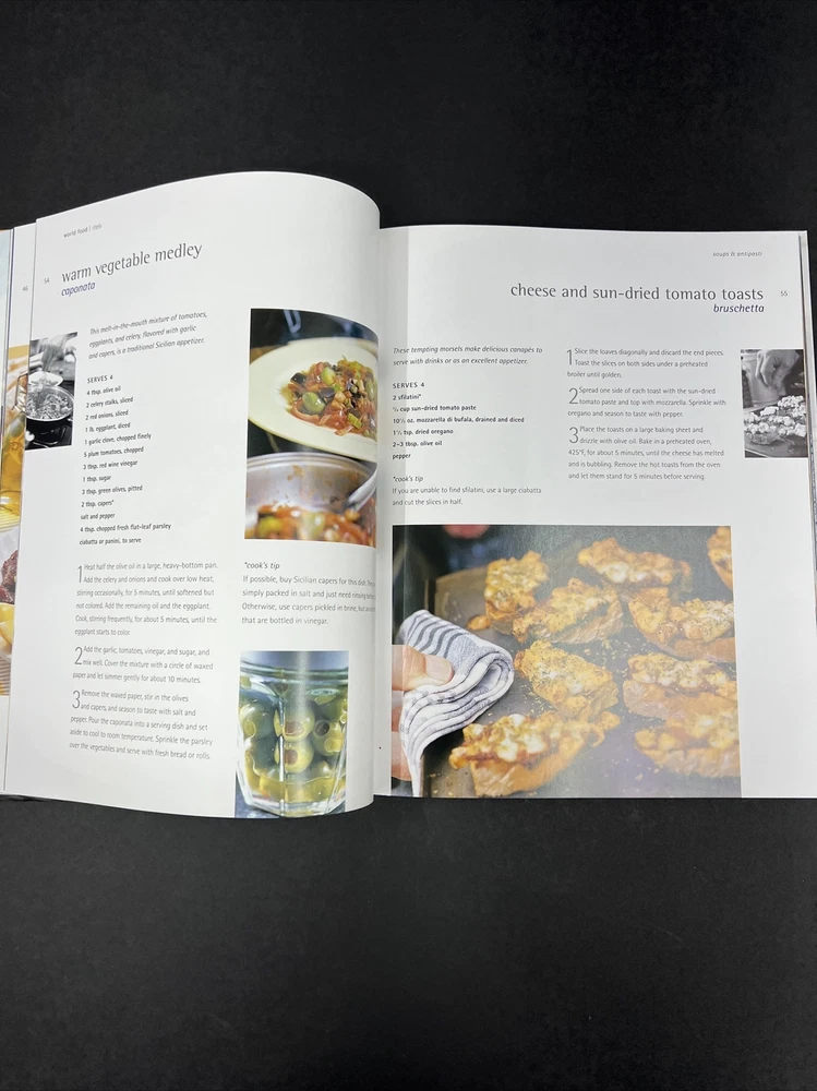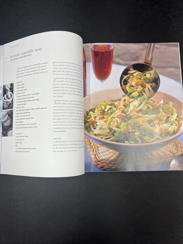 Explore the flavors of Italy with this beautiful hardcover cookbook, World Food Italy by Linda Doeser. Discover the secrets of Italian cuisine with over 250 pages of mouth-watering seafood recipes, regional specialties, and national cooking styles. This first edition book, published in 2003 by Readerlink Distribution Services, LLC, is illustrated with stunning visuals and is perfect for young adults and adults who love to cook and experiment with food. Immerse yourself in Italian culture through the pages of this vintage cookbook, which includes the original English language text. Add World Food Italy to your collection of cookbooks and transform your kitchen into a culinary destination.