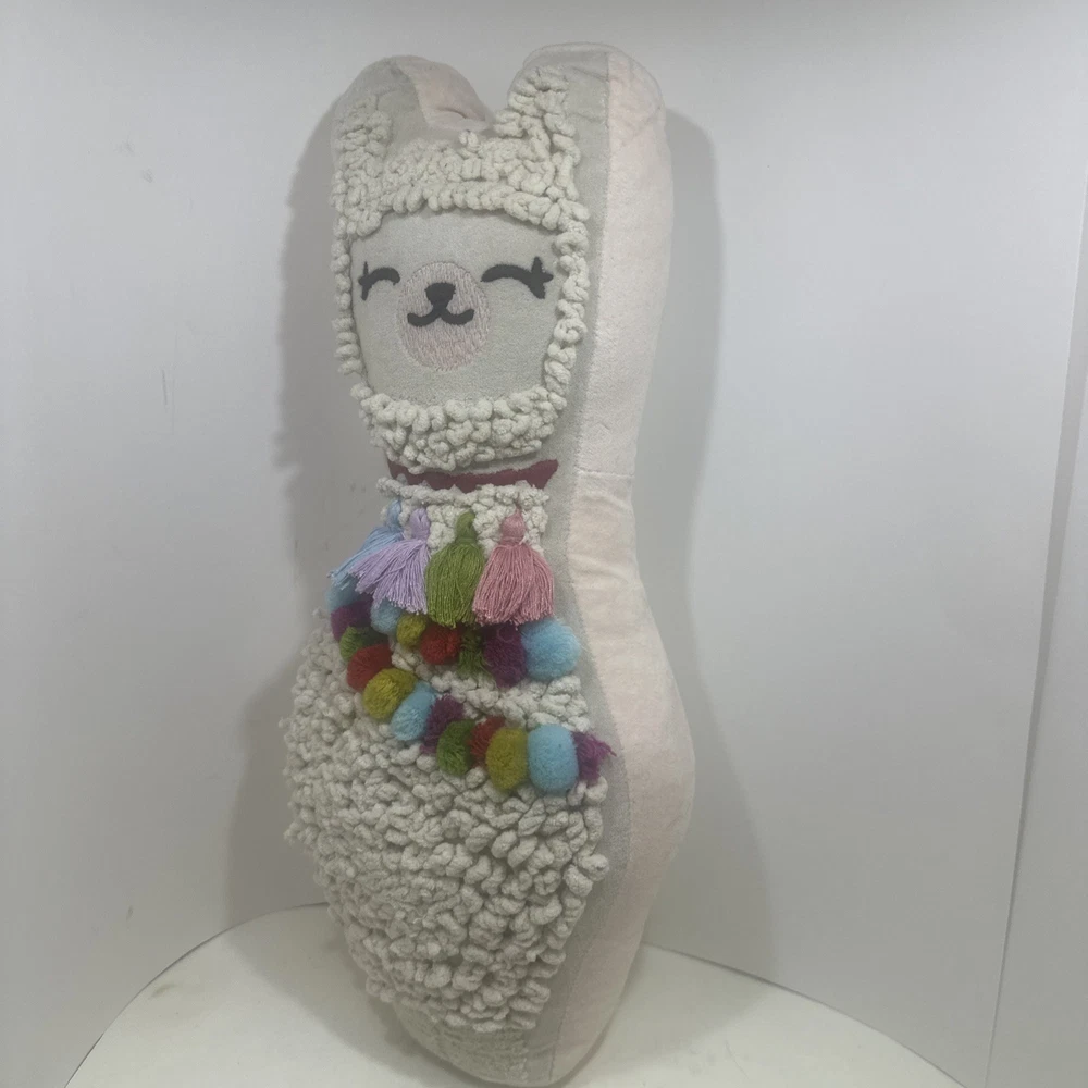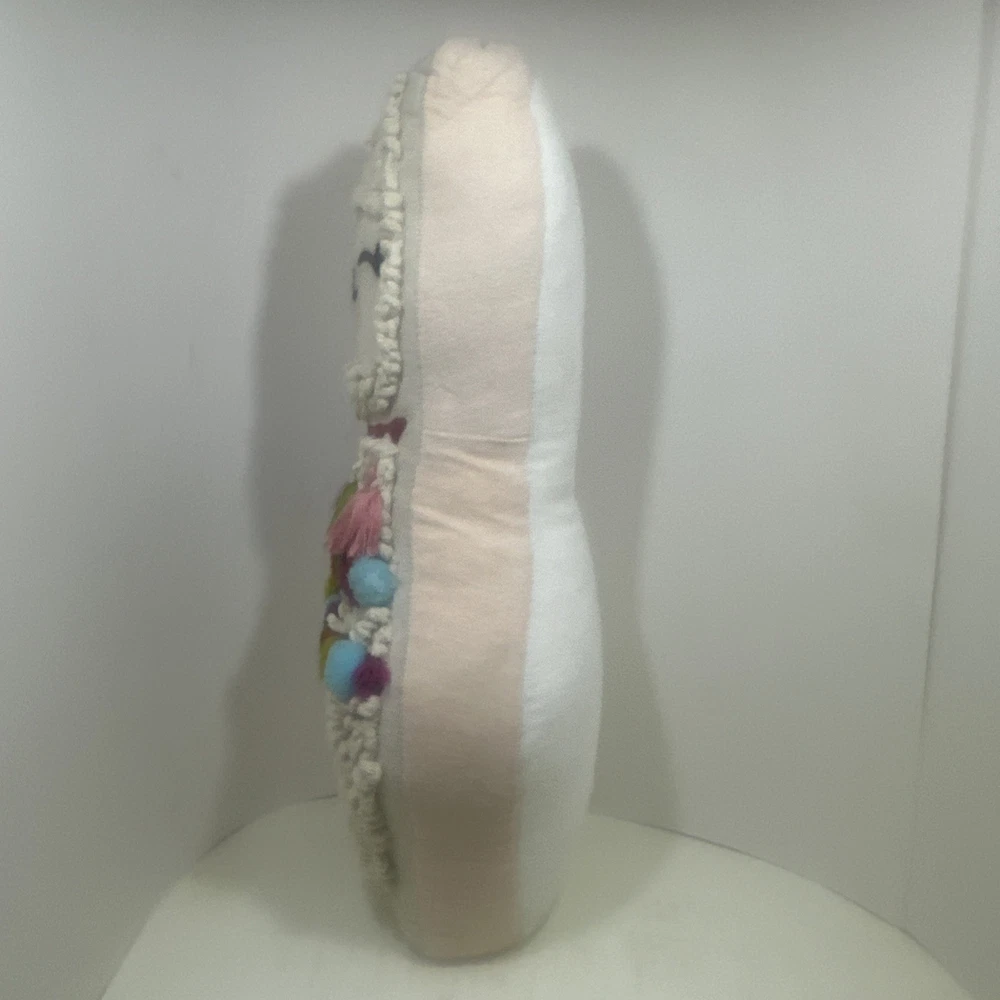 Shape: Llama Care Instructions: Spot Clean Only Department: Girls, Boys, Kids, Women, Men Item Width: 10.5 in Character: Llama Subject: Llama Type: Decorative Pillow Theme: Animals, Llamas Character Family: Llama Style: Whimsical Color: Multicolor Item Length: 2 in Size: 16” x 10.5” x 2” Item Height: 16 in Brand: World Market Room: Any Features: Poms And Tassels Material: 100% Polyester Pattern: Artistic Country of Origin: India