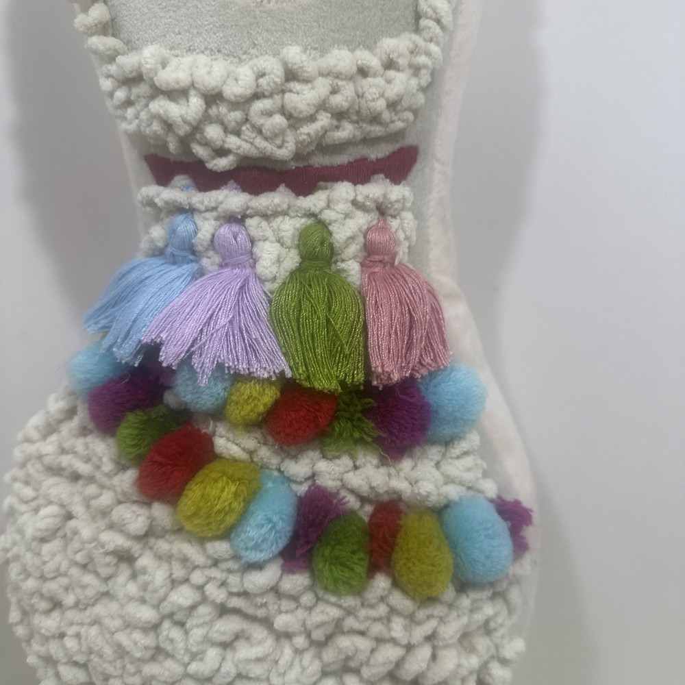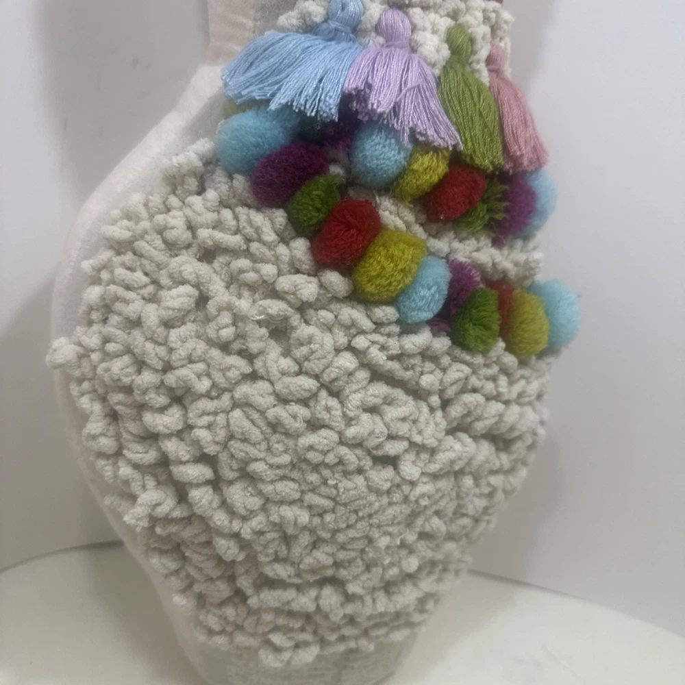 World Market Tufted Llama Toss Pillow With Poms Tassels - 16” x 10.5” x 2”