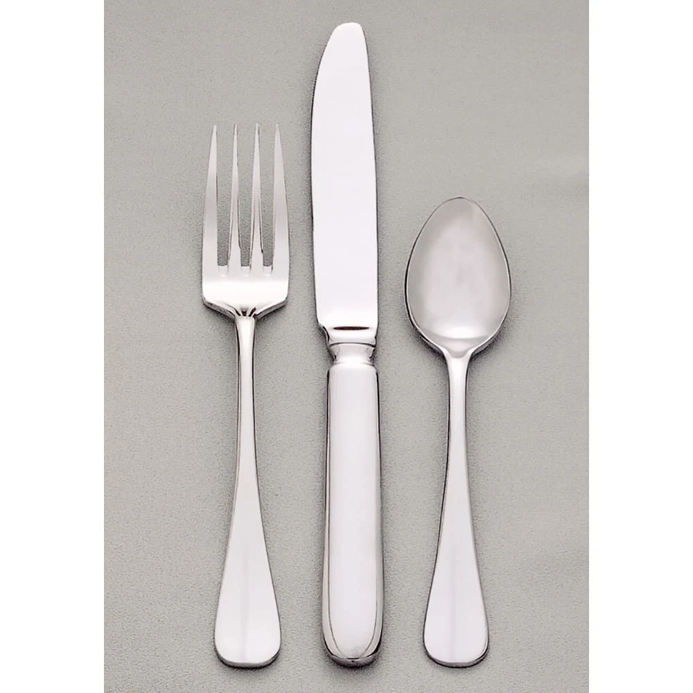 Baguette flatware from World® Tableware features a teardrop shaped handle with slight crease decoration. This 9‐3/4" dinner knife has a solid handle and is dishwasher safe for easy clean‐up. Model #: 213 5503 Reflective mirror finish Tailored crease on handle 18% Chrome no nickel Lightweight Works with magnetic flatware retrievers Serrated blade Solid handle Dishwasher safe "