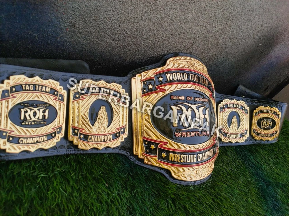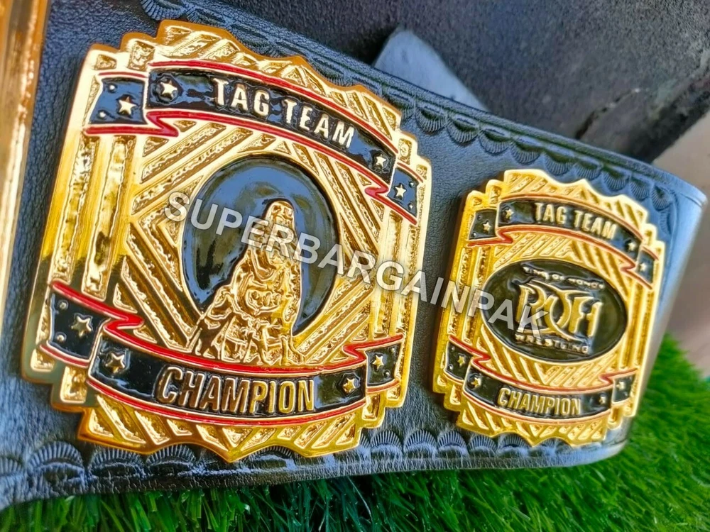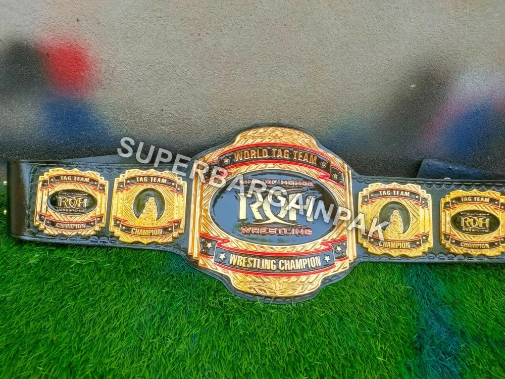 Welcome to our shop ------------------------------------------- We are specialist in manufacturing handmade products:: Our wide range of products include: >>>>Championship Belts WWE | WWF | AEW | UFC | WBC | WCW Product Description *** ROH World Tag Team Wrestling Champion Championship Belt 4mm Zinc *** Plate Metal: Zinc Strap: 100% Floppy Leather Largest Waist Size: Fits upto 46'' Belt Length: ~50" Weight: 4.57 lbs | 2.51 Kg Plate Thickness:4mm Version ::The belt is well crafted and manufactured to meet the quality demands of fans:: Get your hands on this marvelous piece now! Note: If you need further details kindly inbox us, we will try to be as responsive as possible. ------------------------------------------- Return Policy: Generally we don't have much complains on our products and we make sure to 100% satisfy our clients. We send the product in well Bubble Wrapped packaging so there is highly unlike chance of getting damaged item. In case there is a damage, we will try to give partial refund or you can ask for full refund within 30 days after returning the belt to origin. NOTE: 1. If you have placed the order by mistake or you have purchased a wrong item then we are not going to refund that. 2. Buyer will pay the shipping fee of returning the belt. ------------------------------------------- Happy Shopping! :)