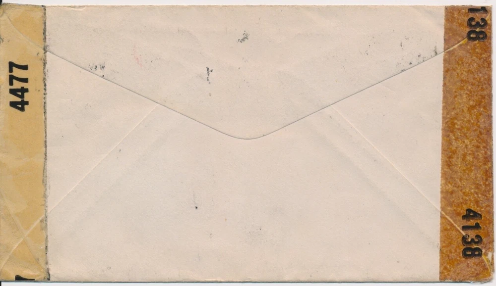 World War II 1943 censored cover to Ponce Puerto Rico forwarded Airmail 10c rate