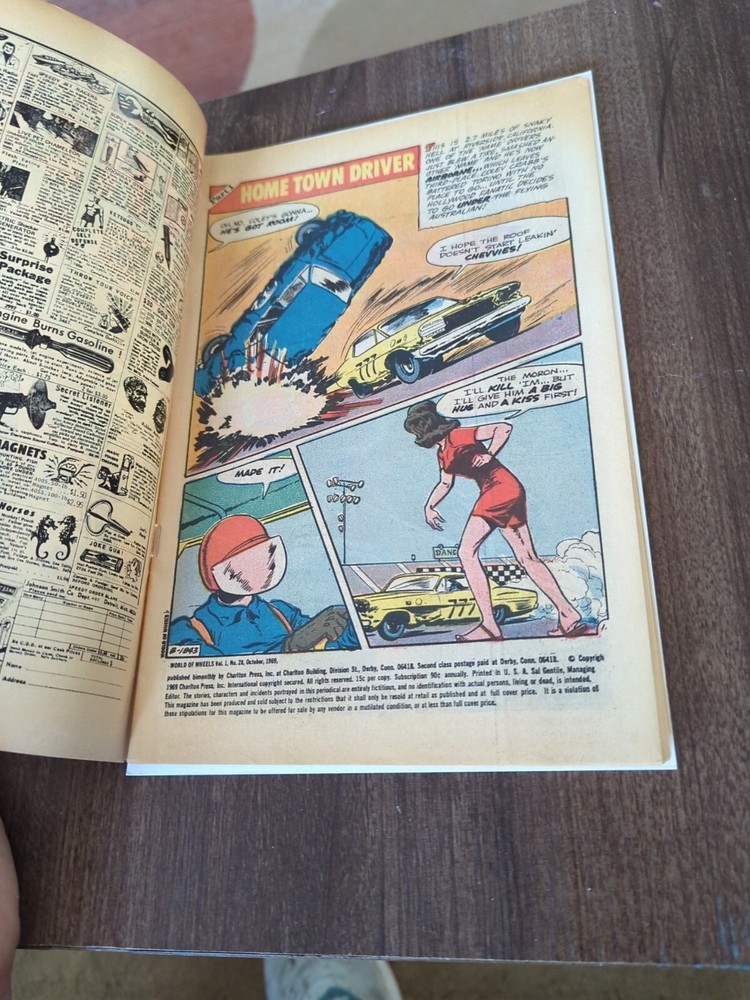 Please look at the photos provided. If you have any further questions, we are happy to answer! We combine shipping. World of Wheels #28 (Charlton Comics, 1969) - Classic Car-Themed Comic: This vintage issue of World of Wheels #28 captures the excitement of the late 1960s car culture with thrilling stories and dynamic artwork. Known for its celebration of classic and custom automobiles, this Charlton Comics series is a nostalgic gem for car enthusiasts and comic collectors alike. A perfect addition to any vintage collection celebrating automotive history in pop culture!