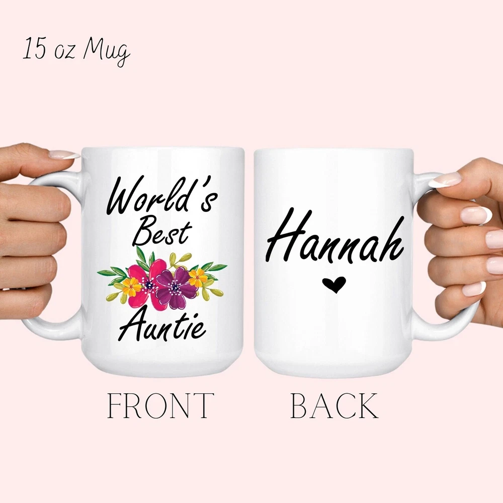 World's Best Auntie Best Auntie Gift Gift For Aunt Mother's Day Gift Aunt Gift Product Details.. This high quality 11oz. ceramic white mug has a premium hard coat that provides crisp and vibrant color reproduction sure to last for years. Perfect for all hot & cold beverages. The highest quality printing possible is used. It will never fade no matter how many times you wash it. Material: 100% Ceramic. Print both sides. Dishwasher and Microwave Safe. High Gloss + Premium White Finish. Printed in the U.S.A. Personalized & Custom. We support personalized and custom mug to add custom, when placing an order, you can add notes to the "order note" in shipping address section. Also you can contact us directly via message. Shipping Info. Ready to ship in 1 to 2 business days, All products are made-to-order and proudly printed in the United States. Shipped by USPS and DHL, You will receive your order in 5-7 days. Replace & Refund. All products are defective during shipping broken, chipped will be replaced free of charge. You are not satisfied with the product, we will refund 100% money to you. If any other issues arise, please do not hesitate to message, we would be more than happy to assist you.