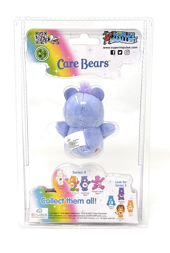 World's Smallest Care Bears Series 4 - Daydream Bear - Item # 5012-4 Includes: 1 plush bear that measures approximately 3" tall This item comes new in sealed blister pack which has some light shelf wear. Free ground shipping.