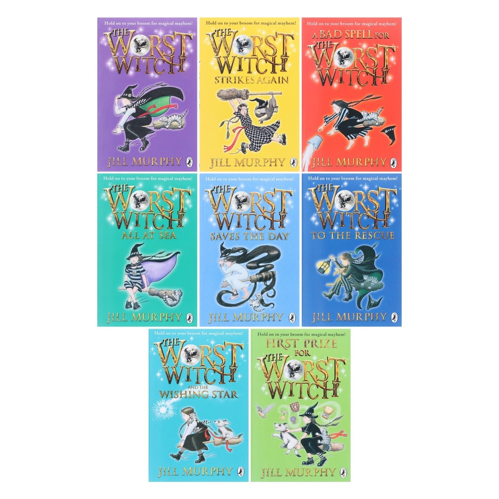 Powered by Frooition Home About Feedback Newsletter Contact Children's Ages (0 - 5) Other Children's Ages (5 - 7) Children's Ages (7 - 9) Children's Ages (9 - 14) Young Adult Fiction Non-Fiction Clearance Sale Welcome to books2door ebay shop We want to encourage a love of reading in all children. That's why we have been offering exceptional books at affordable prices since 2004. We look forward to being a part of your next story. Worst Witch Series By Jill Murphy: Complete 8 Books Box Set - Ages 7-12 - PB Item Description The Worst Witch is a classic children's book series that has captured the hearts of readers for generations. Written by British author Jill Murphy, the series follows the adventures of Mildred Hubble, a young witch at Miss Cackle's Academy for Witches. This set includes all eight books in the series, from The Worst Witch to First Prize for the Worst Witch. In The Worst Witch , readers are introduced to Mildred Hubble, a clumsy and accident-prone young witch who is constantly getting into trouble at school. Despite her shortcomings, Mildred is determined to become a great witch and make her mark at Miss Cackle's Academy. Along the way, she makes friends with the studious Maud Spellbody and the mischievous Enid Nightshade and clashes with her snobbish classmate Ethel Hallow. In The Worst Witch Strikes Again , Mildred returns to school for her second year, only to find that her arch-nemesis Ethel has been made head girl. With the help of her friends, Mildred sets out to prove that she is just as talented and capable as Ethel, and maybe even more so. In A Bad Spell For The Worst Witch , Mildred and her friends are excited to take part in the annual Halloween celebrations, but things take a turn for the worse when they accidentally unleash a powerful spell that brings a group of mischievous ghosts to the academy. The Worst Witch All at Sea finds Mildred and her classmates setting sail on a school trip, only to find themselves stranded on a deserted island with no way to contact the outside world. As they struggle to survive, Mildred must use all of her skills and resourcefulness to keep her friends safe. In The Worst Witch Saves The Day , Mildred is determined to help her school win the Inter-Schools Spell Competition, but when she accidentally turns her teacher into a frog, she must race against time to reverse the spell and save the day. The Worst Witch To The Rescue sees Mildred and her friends coming to the aid of Miss Cackle's Academy when it is threatened by a powerful witch who wants to take over the school. With their courage and teamwork, they are able to overcome the threat and save the academy from disaster. In The Worst Witch and The Wishing Star , Mildred and her friends are thrilled to be invited to a magical gathering in the woods, but when they accidentally lose the wishing star that is the centrepiece of the event, they must set out on a dangerous journey to retrieve it before it falls into the wrong hands. Throughout the series, Jill Murphy weaves a captivating and magical world that is sure to enchant readers of all ages. With its relatable characters, humour, and themes of friendship and determination, The Worst Witch has become a beloved classic that continues to inspire and entertain readers today. This box set is the perfect addition to any young reader's collection, offering hours of fun and adventure with Mildred and her friends. The Worst Witch Books in order: The Worst Witch The Worst Witch Strikes Again A Bad Spell For The Worst Witch The Worst Witch All at Sea The Worst Witch Saves The Day The Worst Witch To The Rescue The Worst Witch And The Wishing Star First Prize for the Worst Witch Description from the Publisher: The Worst Witch The Worst Witch written and illustrated by Jill Murphy is reissued with exciting new branding and format. The Worst Witch is the first in the bestselling children's series by Jill Murphy. Hold on to your broomstick for magical mayhem! Jill Murphy's much-loved classic The Worst Witch is the original story of life at a magical boarding school, perfect for readers aged 5 - 9 years. Mildred Hubble is a trainee at Miss Cackle's Academy for Witches, but she's making an awful mess of it. She keeps getting her spells wrong and crashing her broomstick. And when she turns Ethel, the teacher's pet into her worst enemy, chaos ensues... The Worst Witch Strikes Again The Worst Witch Strikes Again is a classic Worst Witch book by Jill Murphy The Worst Witch Strikes Again is the second of Jill Murphy's much-loved series The Worst Witch, the original story of life at a magical boarding school, perfect for readers aged 5 - 9. Lovable but disaster-prone Mildred Hubble is possibly the worst witch ever to go to Miss Cackle's Academy for Witches . . . A Bad Spell For The Worst Witch A Bad Spell for the Worst Witch is a classic Worst Witch story by Jill Murphy A Bad Spell for the Worst Witch is the third of Jill Murphy's much-loved The Worst Witch series, the original story of a magical boarding school, perfect for readers aged 5 -9. Lovable but disaster-prone Mildred Hubble is possibly the worst witch ever to go to Miss Cackle's Academy for Witches . The Worst Witch All at Sea The Worst Witch All At Sea is a classic Worst Witch story by Jill Murphy The Worst Witch All At Sea is the fourth of Jill Murphy's classic, much-loved The Worst Witch series, the original story of life at a magical boarding school, perfect for readers aged 5-9. Lovable but disaster-prone Mildred Hubble is possibly the worst witch ever to go to Miss Cackle's Academy for Witches . . . The Worst Witch Saves The Day The Worst Witch Saves the Day is a classic Worst Witch story by Jill Murphy and is perfect for readers aged 5 -9. The Worst Witch Saves the Day is the fifth adventure in the much-loved Worst Witch series by Jill Murphy, in which lovable but disaster-prone Mildred Hubble is in trouble once again. She is possibly the worst witch ever to go to Miss Cackle's Aca