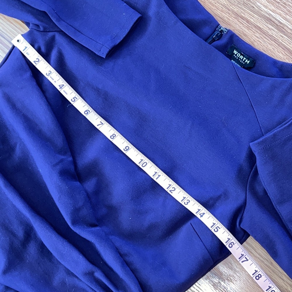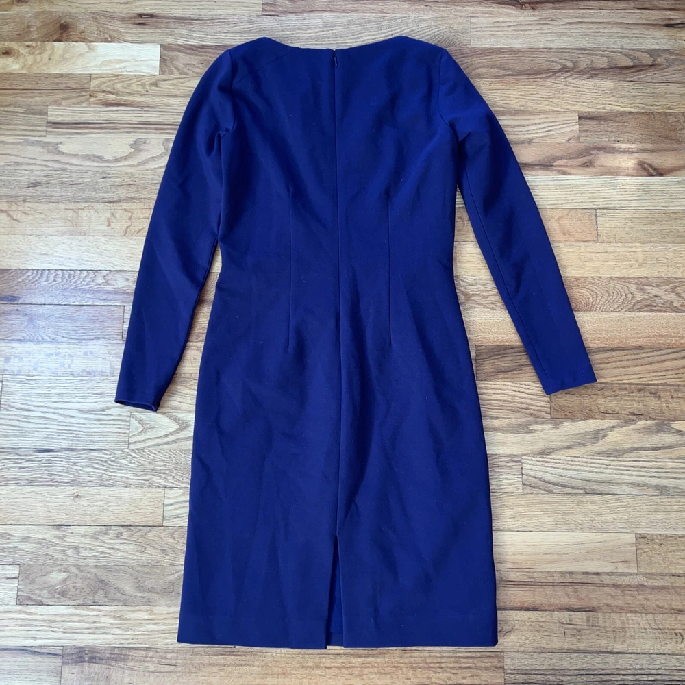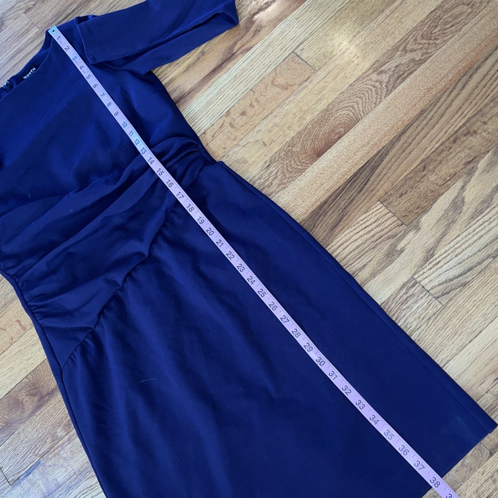 Worth New York Navy Long Sleeve Sheath Faux Wrap Dress Size 6 Grape Violet Lined.
