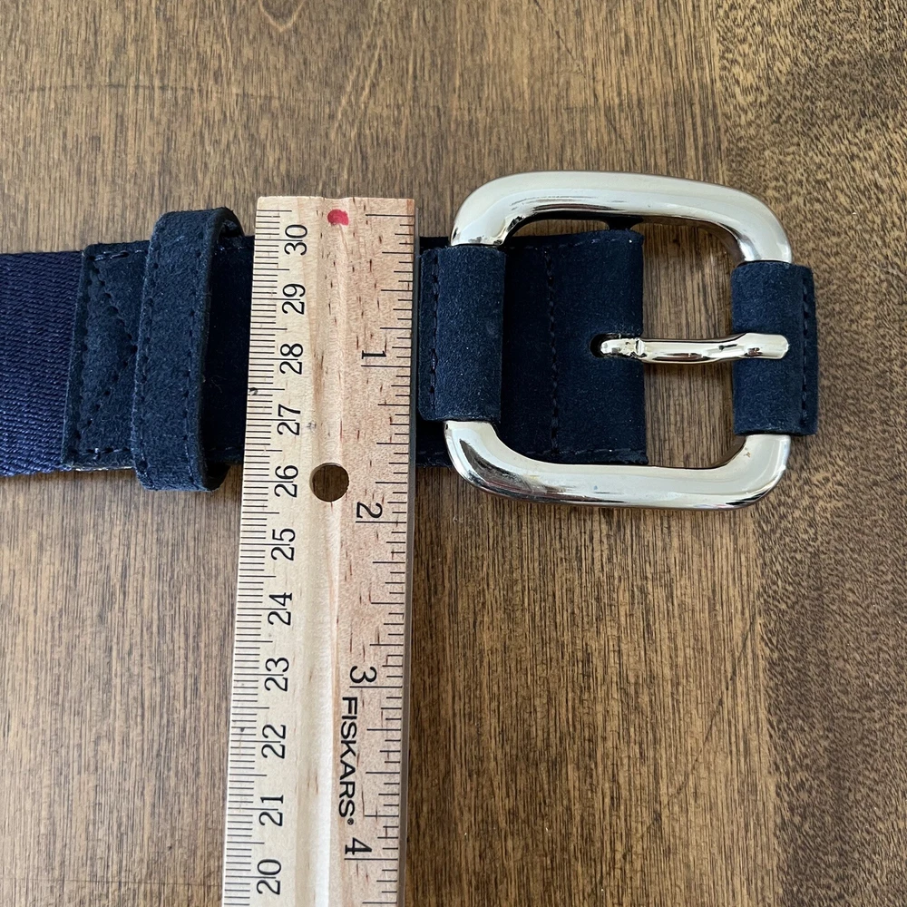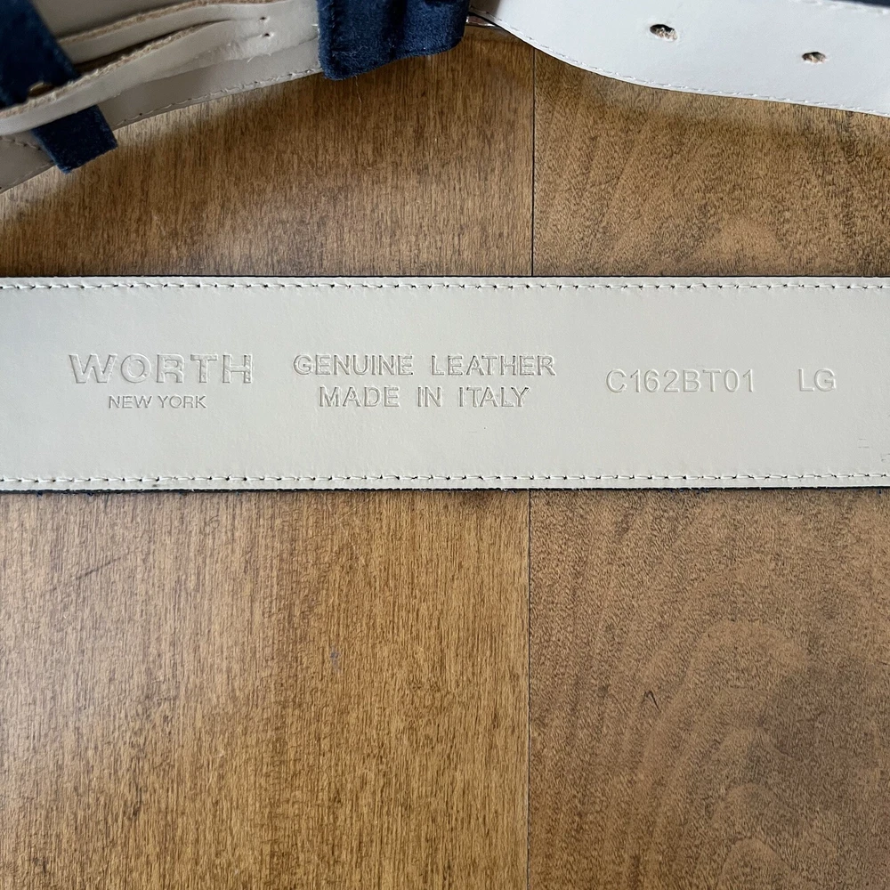 Elevate your wardrobe with the Worth New York Women's Genuine Leather Belt, a timeless accessory that blends functionality with high-end fashion. Crafted from premium leather in a sophisticated navy blue, this belt is a versatile addition to both casual and formal ensembles. Its sleek design features a striking silver buckle that adds a touch of elegance and ensures a secure fit. The belt is designed to cater to a size L, offering an adjustable option to ensure the perfect fit. Its solid pattern and minimalist style make it an ideal choice for those who appreciate a clean aesthetic, whether it's for a day at the office or a night out. The belt's durable leather material and subtle accents, such as the understated buckle, reflect a commitment to quality and understated luxury.