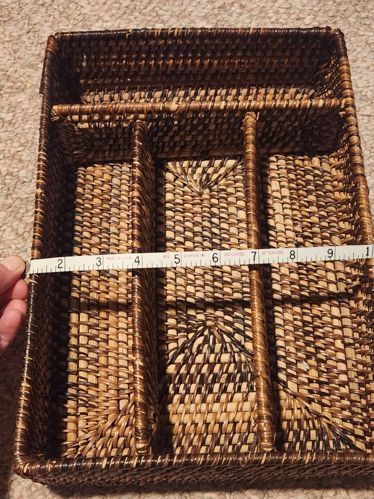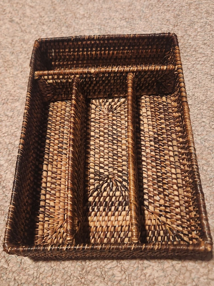 Woven Rattan Silverware Organizer - Stylish Divided Utensil Drawer Holder for Kitchen Storage