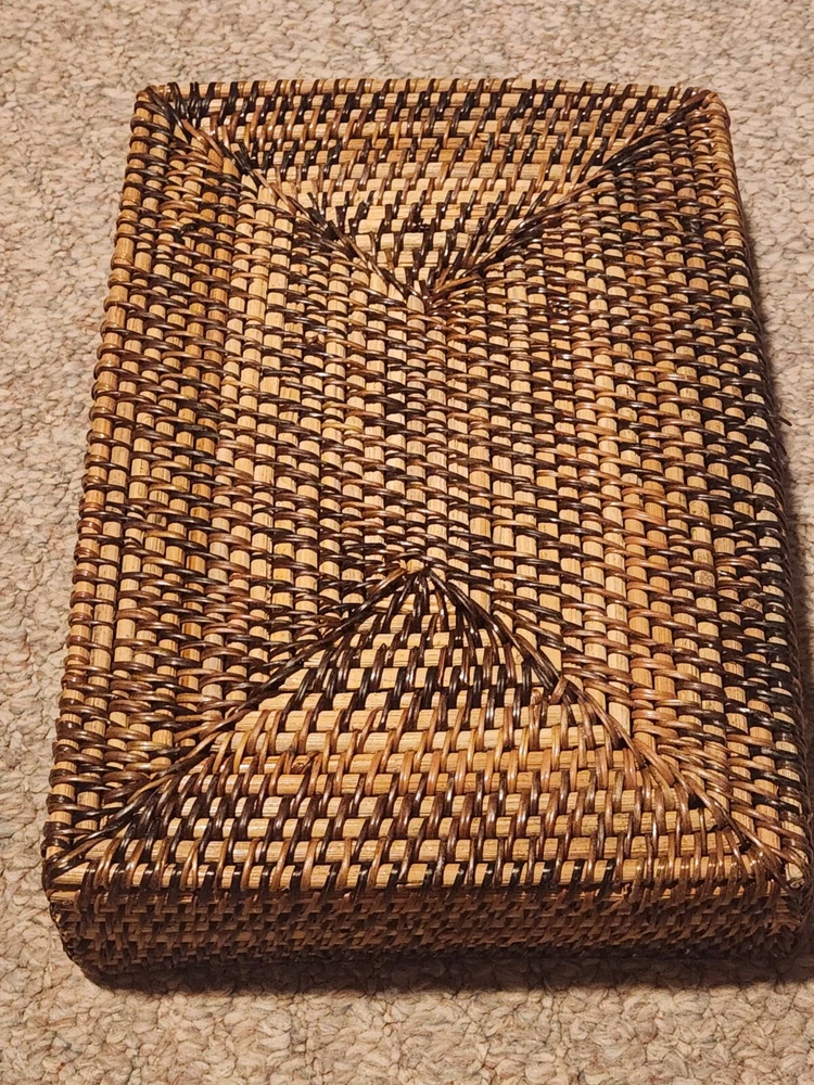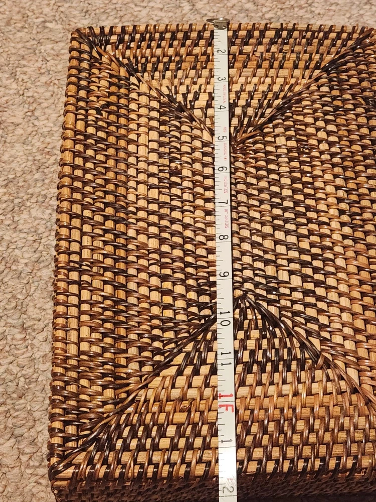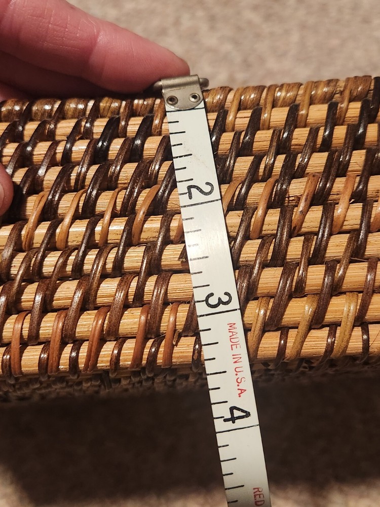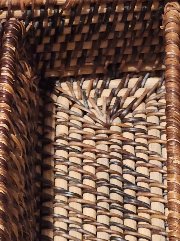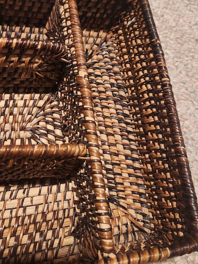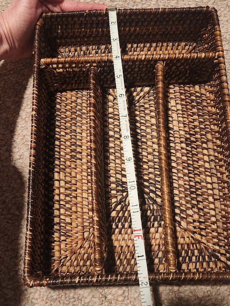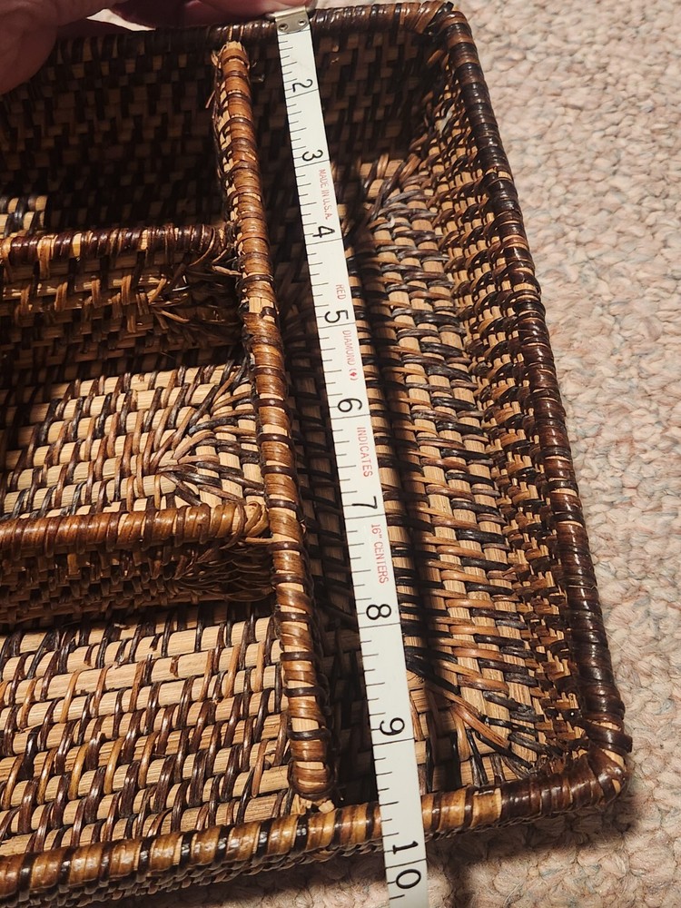 Brand: Unbranded Number of Compartments: 4 Type: organizer Style: Mid-Century Modern Wood Tone: multi colored Item Height: 13 1/2 Material: wicker rattan plastic, wicker rattan plastic bamboo, Bamboo Country/Region of Manufacture: Unknown Features: Multipurpose Item Width: 10 in Color: Brown