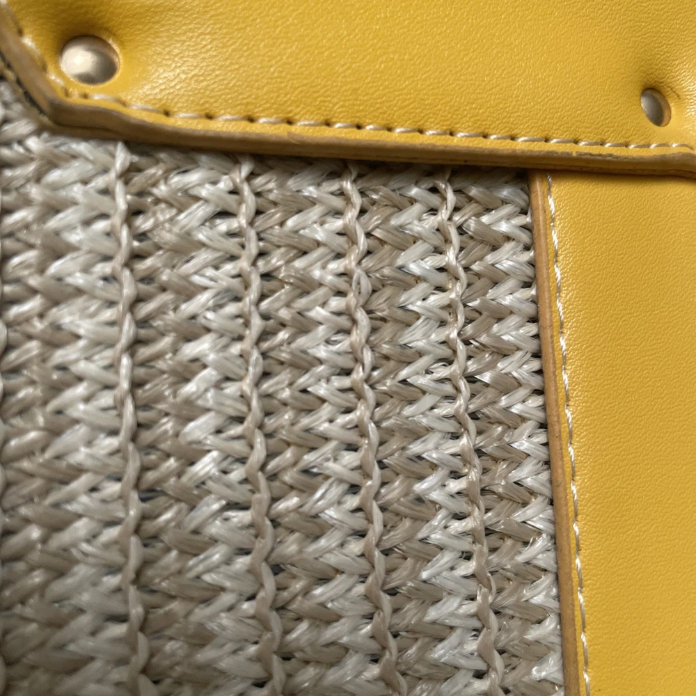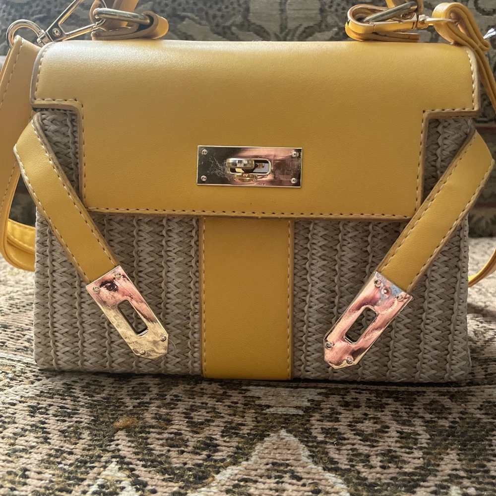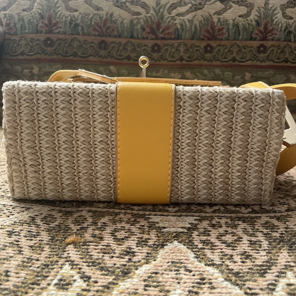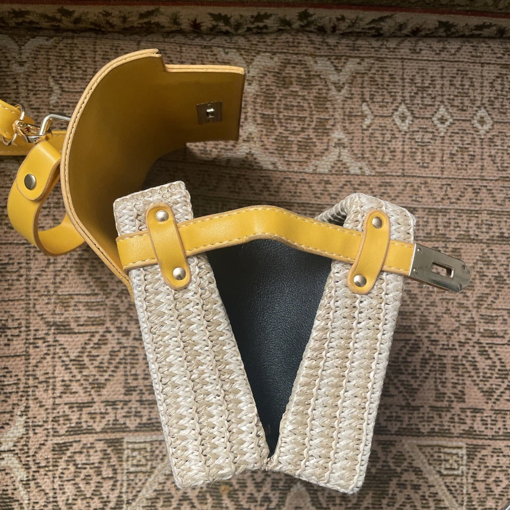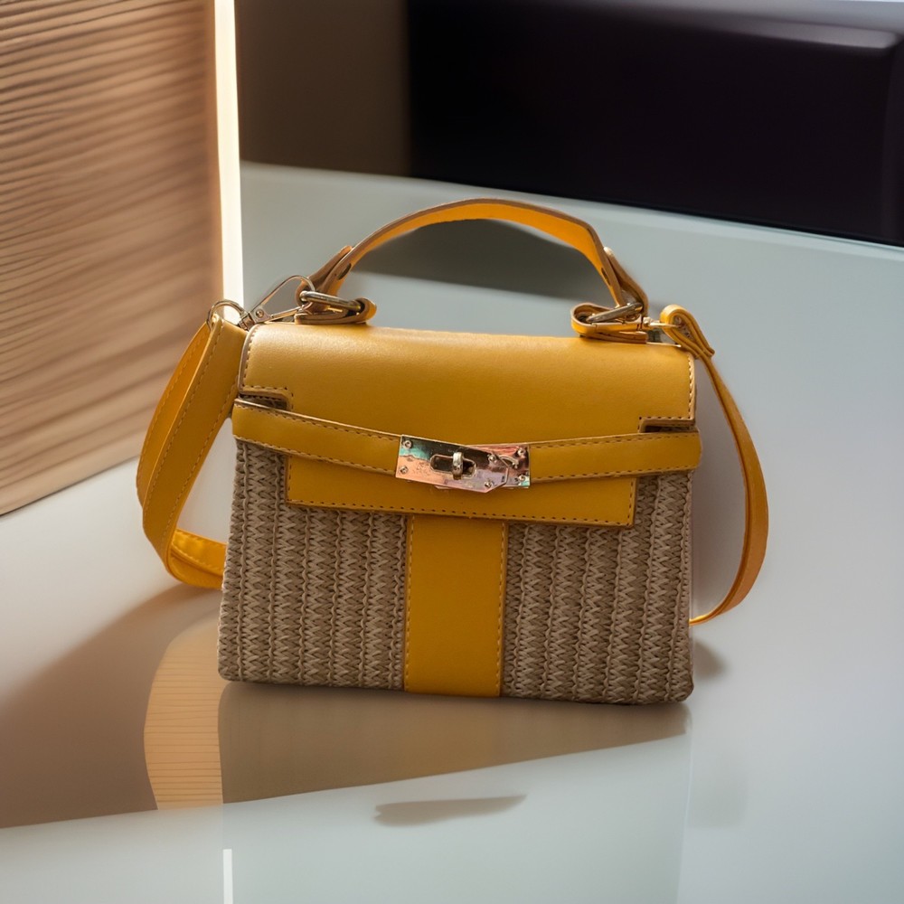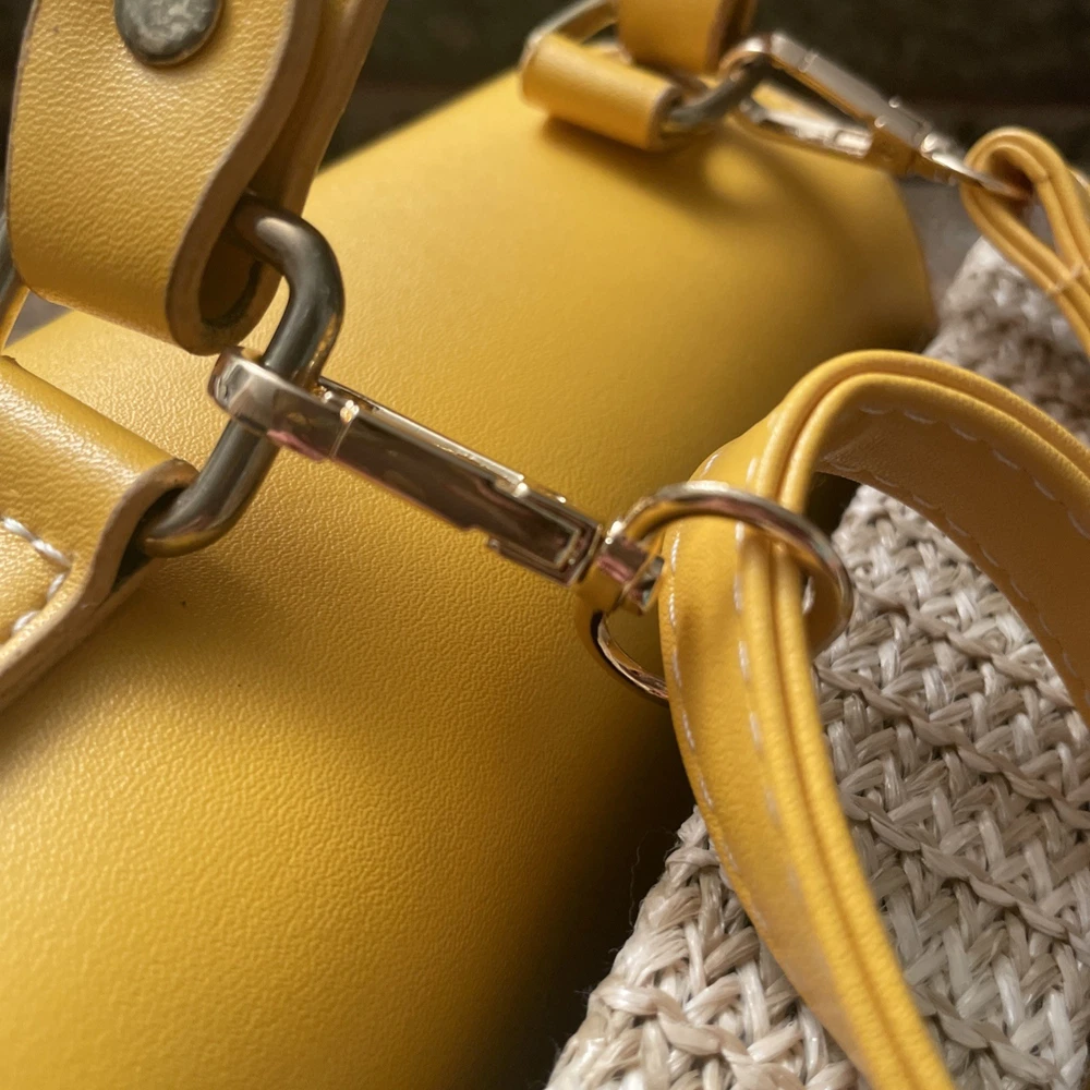 Size: Medium Capacity: 2.0 Display Size: 20.0 Number Of Pockets: 2 Type: Does not apply Pocket Description: Interior Slip Pocket Size Info Display Name: Medium Country of Origin: China Model Name: Straw Beach Shoulder Handbag Closure Type: Twist Lock Zippered Compartment Count: 1 Seasons: All Included Components: Handbag, Shoulder Strap, Decorative Charm Exterior Material: Leather, Straw Embellishment Feature: Decorative Charm Import Designation: Imported Outer Material: Leather, Straw Exterior Color: Yellow Brand: Does not apply Material Feature: Durable, Vegan Inner Material: Synthetic Department: Womens Strap Type: Adjustable Number Of Compartments: 2 Pattern Type: Solid Target Audience: Women Target Gender: Female Item Shape: Square Strap Length: 48.0 Age Range Description: Adult Style: Fashion Lining Description: Fabric Lined Number Of Sections: 2 Package Dimensions LxWxH: 2.0x1.0x1.0 Inches Handle Type: Double Top Handle Handbag Silhouette: Satchel Pattern: Solid Weight: 0.5 Pounds Number Of Handles: 2