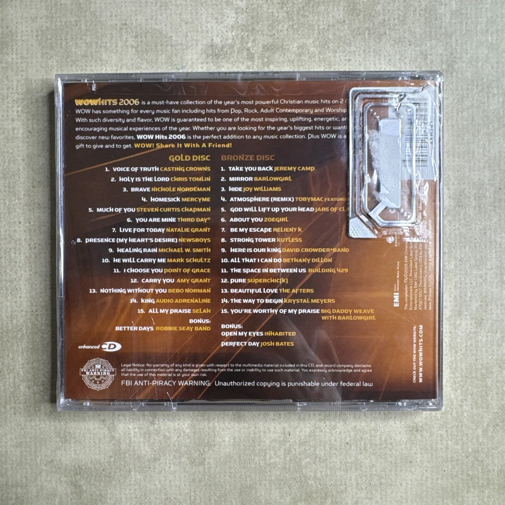 Record Label:EMI Christian Music GroupRelease Title:Wow Hits 2006Format:CDGenre:Gospel, Religious & Devotional, Contemporary ChristianStyle:ChristianArtist:Various ArtistsRun Time:67 min.UPC:0094631124709Release Year:2005gtin13:0094631124709Number of Discs:2