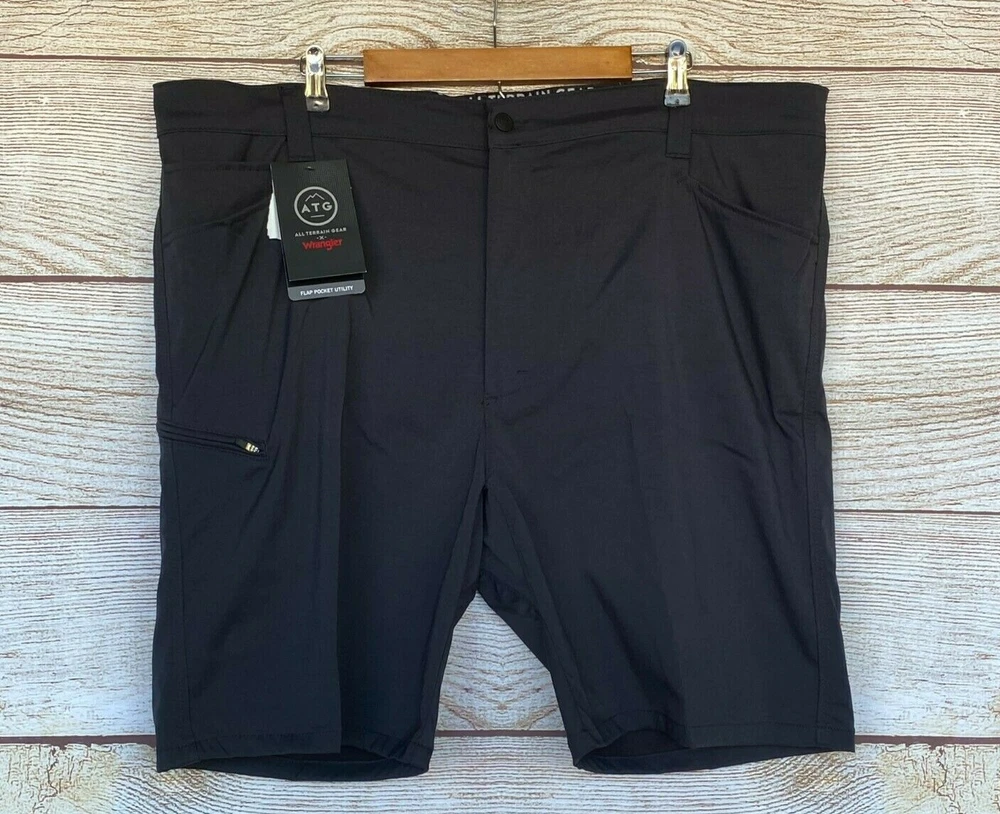 Approximate Measurements: Waist: 45-49" Stretched Rise: 13" Inseam: 9.5" About Wrangler Utility Shorts (For Men) Dive into any adventure with confidence in Wrangler's utility shorts, crafted from moisture-wicking stretch canvas construction with water-resistant properties to ensure you stay dry and comfortable. Moisture-wicking stretch canvas construction Water-resistant properties Comfort soft waistband Zip fly with button closure Gusseted crotch Convertible back pocket with tuck-in flap Secure side zip pocket Made in Bangladesh ShipSaver