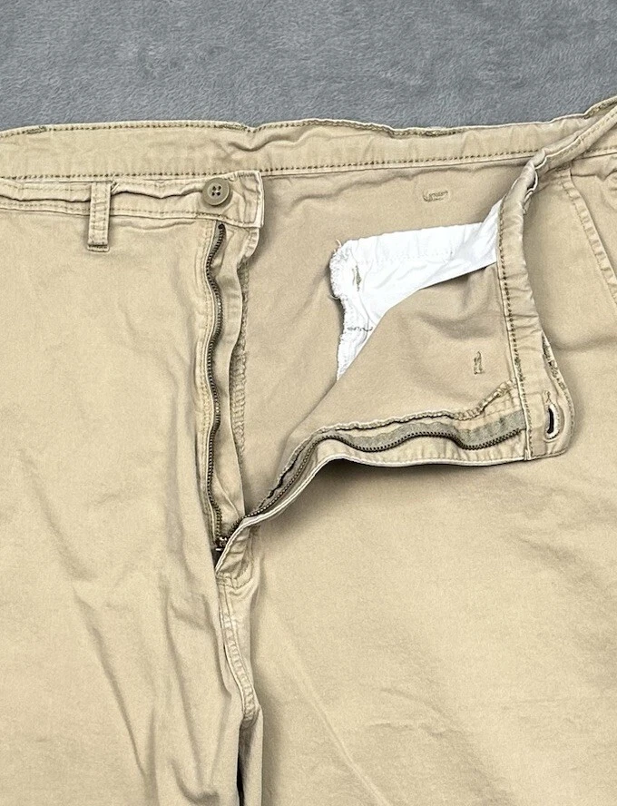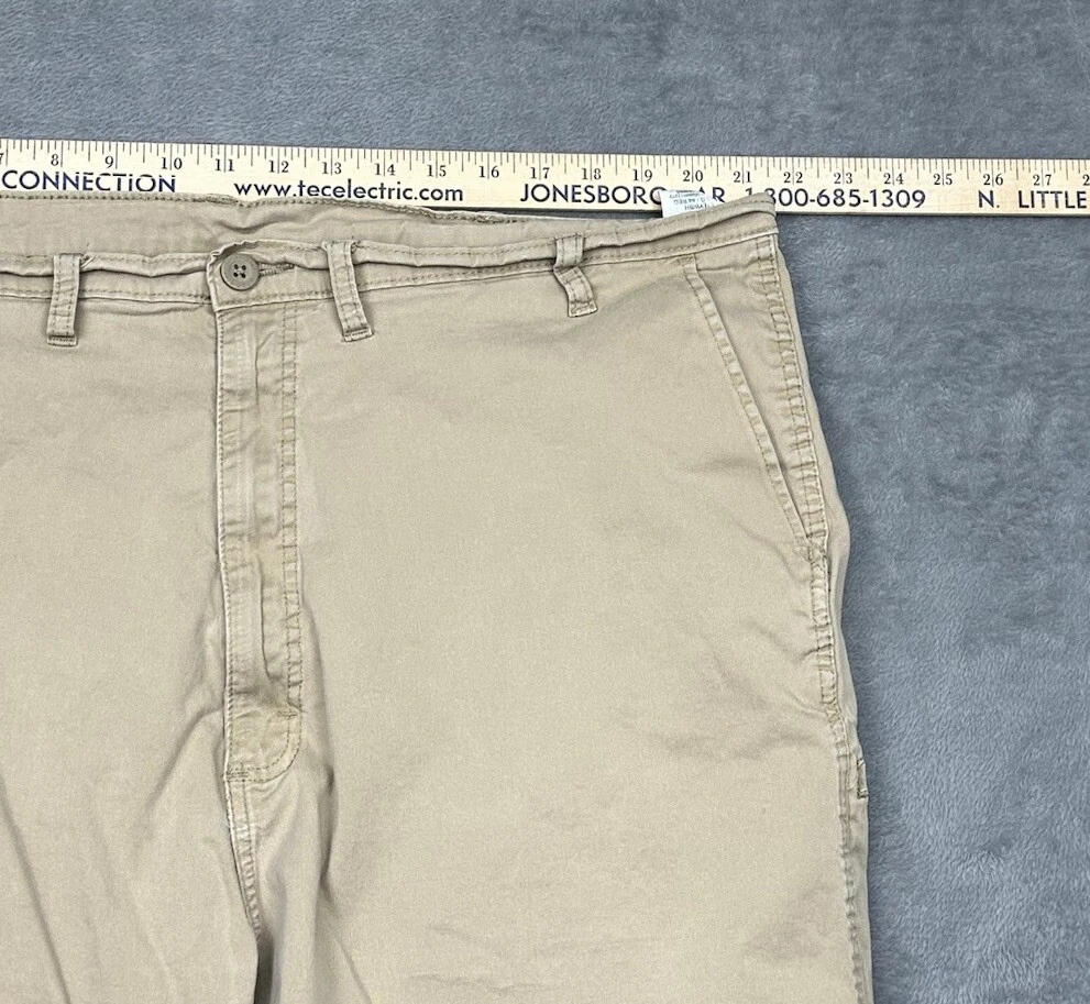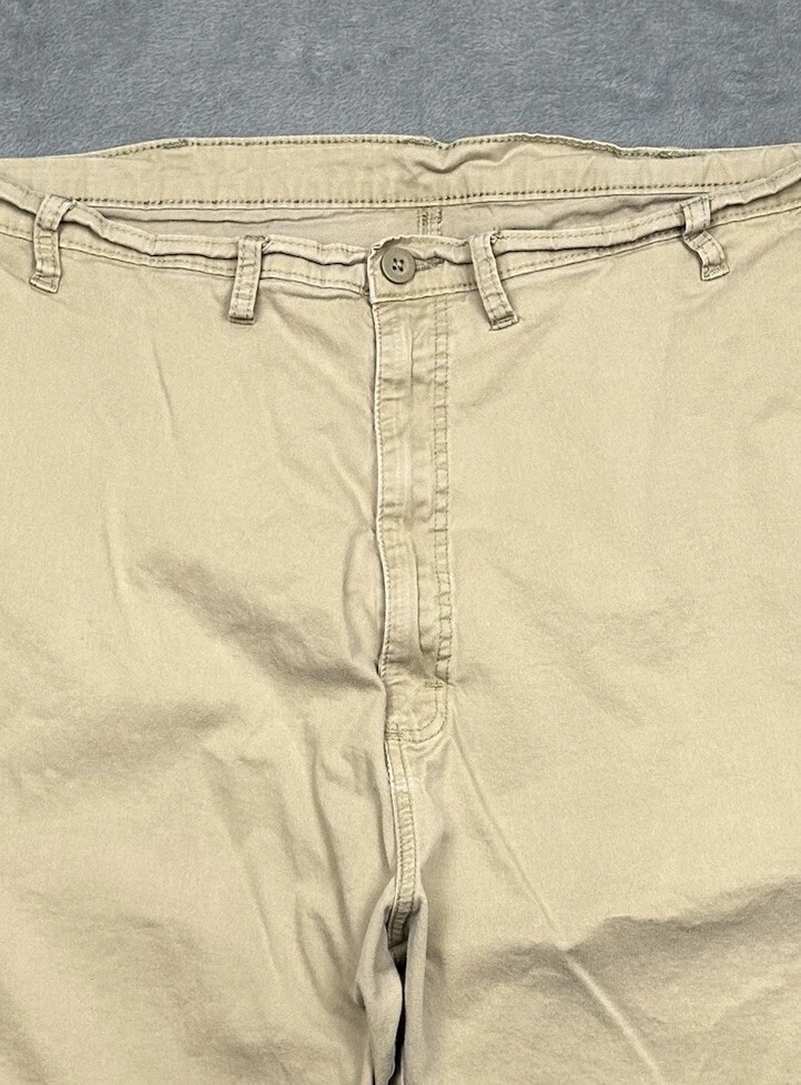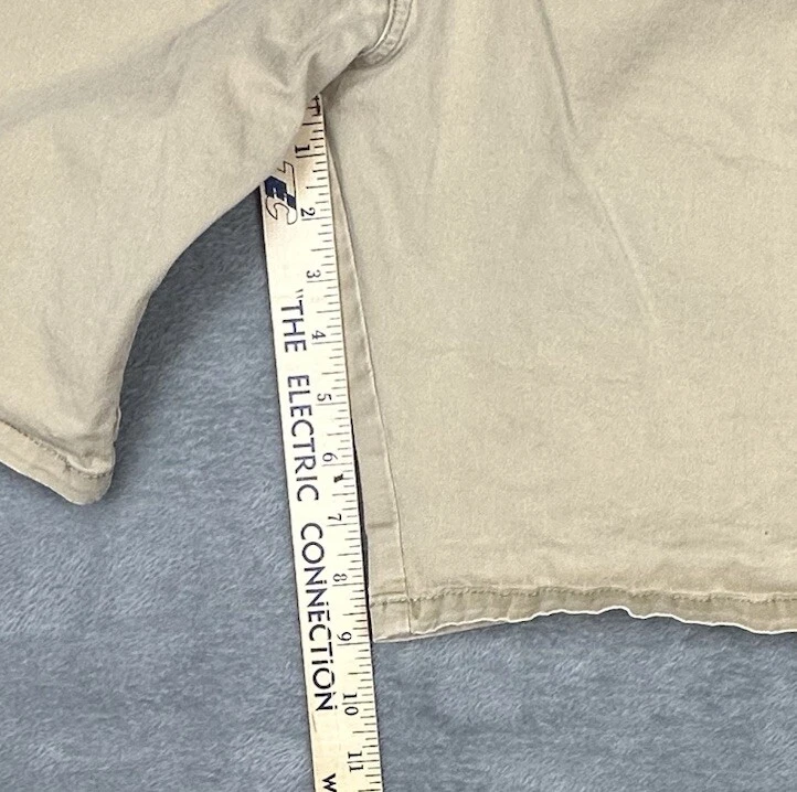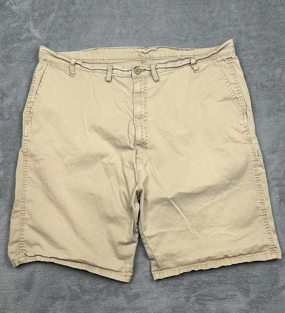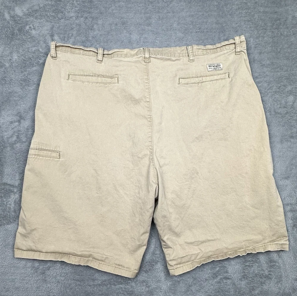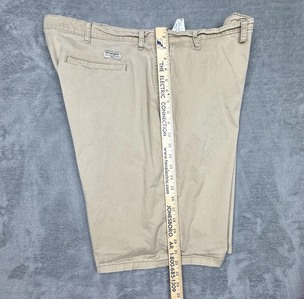 Wrangler Authentic Issue Shorts Mens 44 Regular Beige 9" Inseam Stretch Casual Some fading but no holes or stains noticed. Good pre-owned condition and laundered. Please see measurements in photos. I ship next business day, but sometimes same business day and Saturday if order is paid for early enough. Please let me know if you have any questions. I am open to offers!! Feel free to look at other items in my store! Thanks!