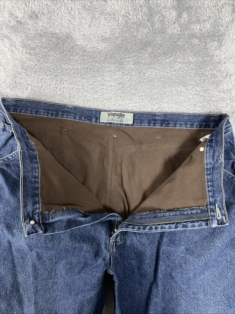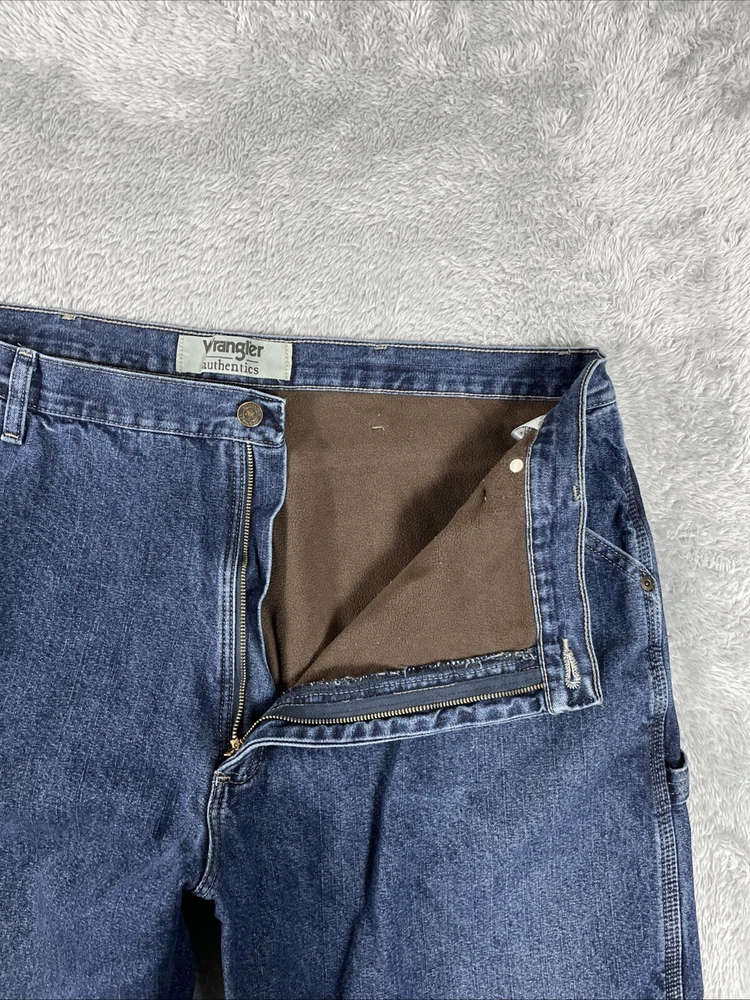 Wrangler Authentics Jeans Men's 41x29.5 (Actual) Blue Carpenter Fleece Lined Tag size is: 42 x 30 Actual measures are: ~41 x 29.5 See photos for measurements. Condition is used. Good used condition with typical wear. No losses to note. See photos for condition and detail. Please look carefully at all photos. The photos are an important part of the description. If you have questions, please ask. Returns are accepted within 30 days of purchase. The item must be returned in exactly the same condition as received. Items will be inspected, serial numbers checked, etc. Shipping fees are not refundable.
