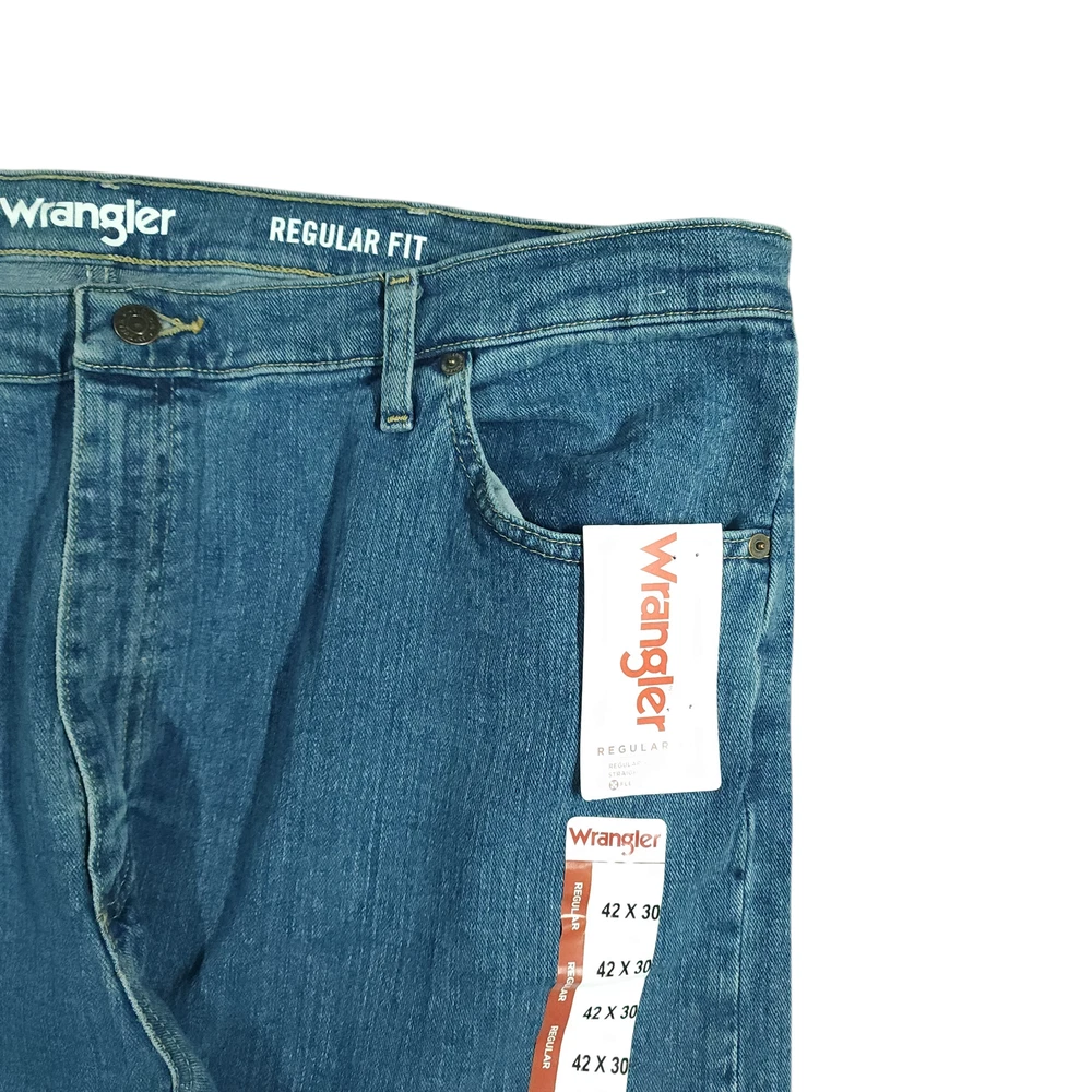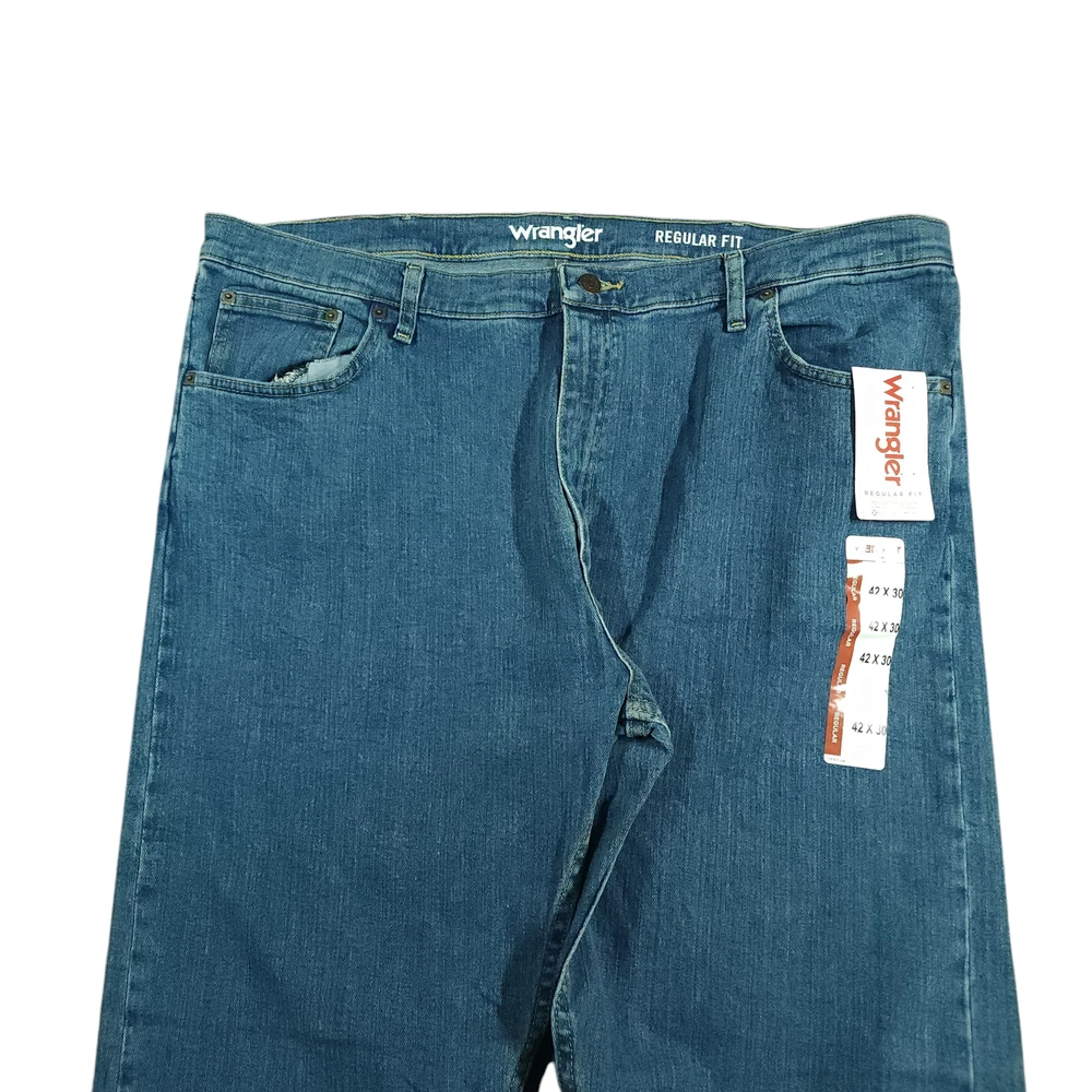 Wrangler Jeans 42x30 Mens Regular Fit Flex High Waisted Wide Leg Whiskering 10MGW25MS These jeans are going to sit at or slightly above your waist and provide that classic/regular fit through the seat, tapered leg below the knee, and that Y2K wide leg style. Get them before they are gone!! Product Details Waist 43 inches Inseam 29 inches Rise 13 inches Leg 18 inches Thigh/Hip 46 inches Knee 21 inches Material 99% cotton/1% spandex Imported Nicaragua I ship the same day if the order is received by 1 PM EST or ship the next day utilizing recycled, sustainable packaging and materials. I do not ship to Belarus, Russia, Mexico, Vietnam, and Germany due to national shipping requirements/restrictions. I offer automatic combined shipping and also I offer bundle and shipping discounts for 2 or more items purchased in my store. Buyer is responsible for the payment of all import fees if international sale. I accept returns if permitted by the platform that the item was purchased on within 30 days of delivery date. Items must be returned in the condition received. International returns are at the buyer's expense. All clothing items have been steam cleaned and/or washed. If you have questions, I will respond as quickly as I can.