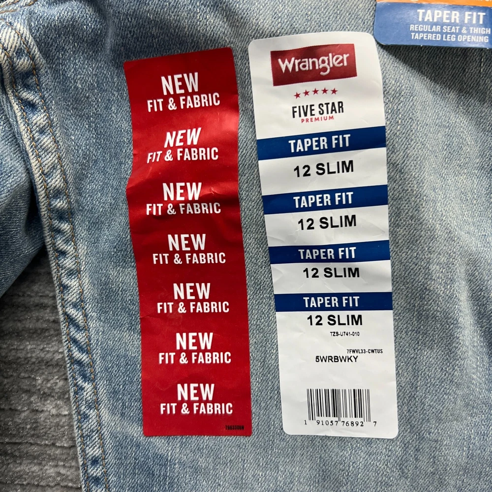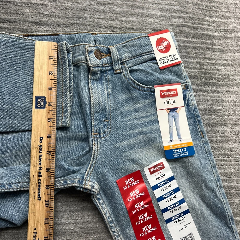 Wrangler Jeans Jeans Size 12 Slim Youth Boys Taper Fit Blue Denim NWT Please View Photos Closely. Please note, item measurements are approximate and in the photos. Items are carefully inspected and sealed after photos, so we cannot check additional measurements or details for you. All clothing has been cleaned/washed per eBay standards. We store our items in a pet and smoke free environment. We ship daily, and have 30 day returns. Thank you!