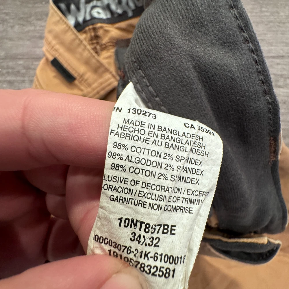 Front Type: Flat Front Pocket Type: 5-Pocket Design Vintage: No Occasion: Casual Product Line: Wrangler Performance Series Color: Beige Accents: Logo Size: 34 Garment Care: Machine Washable Handmade: No Leg Style: Straight Waist Size: 34 in Season: Fall, Spring, Summer Fit: Regular Material: Nylon Blend Size Type: Regular Closure: Zip Fabric Type: Canvas Theme: Outdoor Style: Hiking Pants Features: Pockets, Stretch, Comfort Inseam: 31 in Type: Pants Brand: Wrangler Pattern: Solid Department: Men Personalize: No