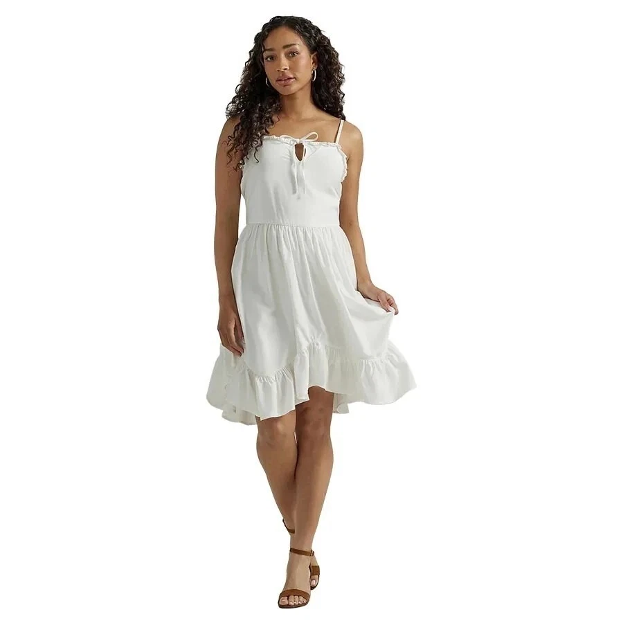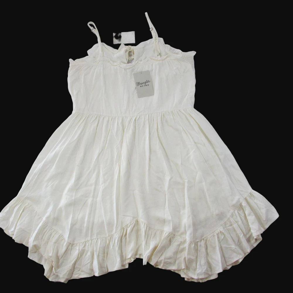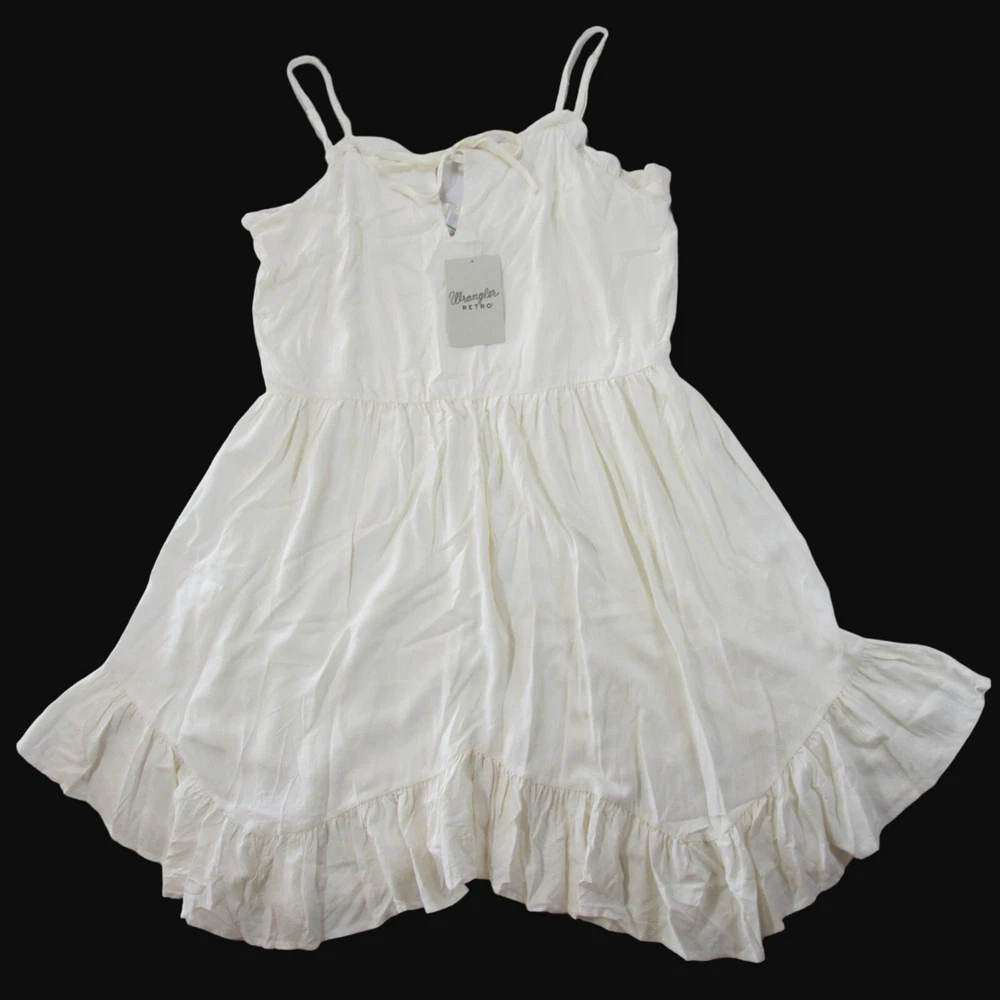 Brand new with tags Women's Size Large (See pics for approx measurements) Brand: Wrangler Retro Color: Cream/Ivory Strappy Tie Front Ruffle Hem Dream Tank Dress