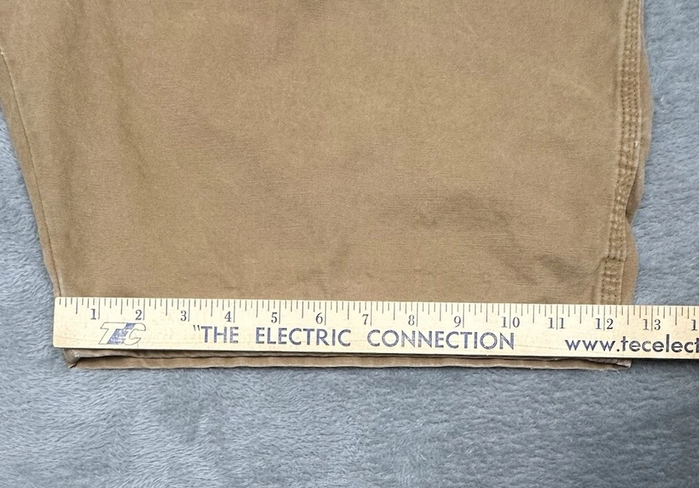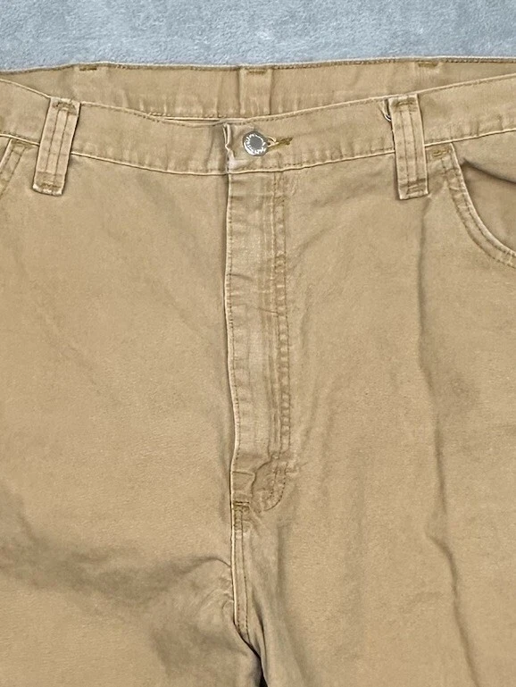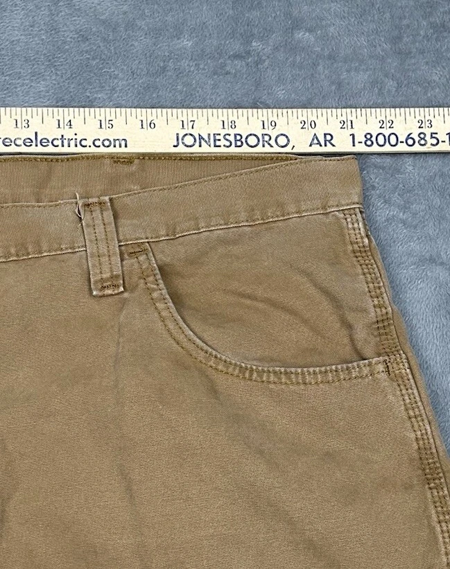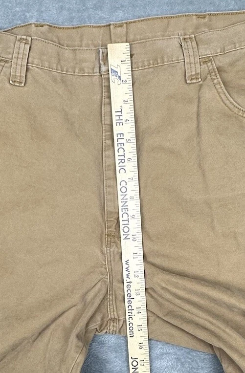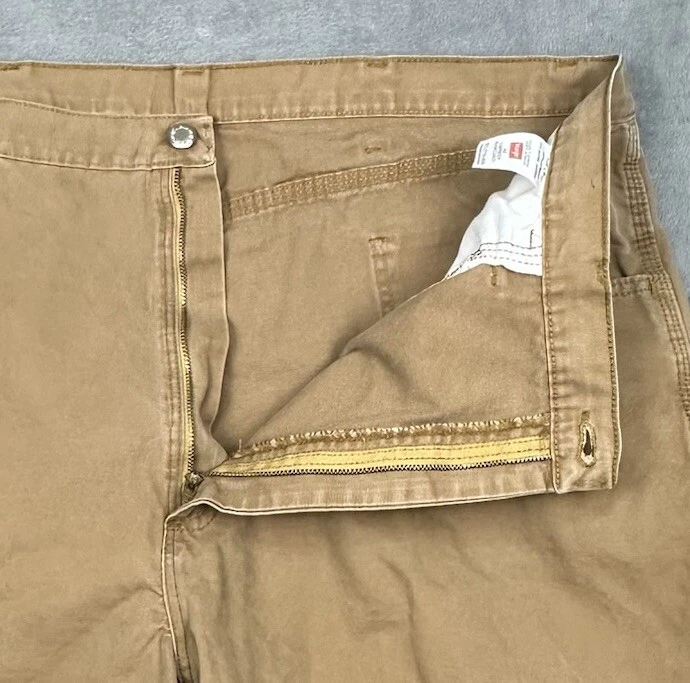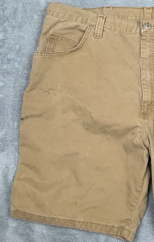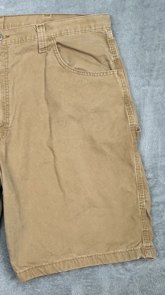 Wrangler Carpenter Shorts Mens 42 Brown Canvas Utility Authentic Issue Work READ Stains, some fading and wear around seams but no holes or tears and in overall good pre-owned condition and laundered. Please see measurements in photos. I ship next business day, but sometimes same business day and Saturday if order is paid for early enough. Please let me know if you have any questions. I am open to offers!! Feel free to look at other items in my store! Thanks!