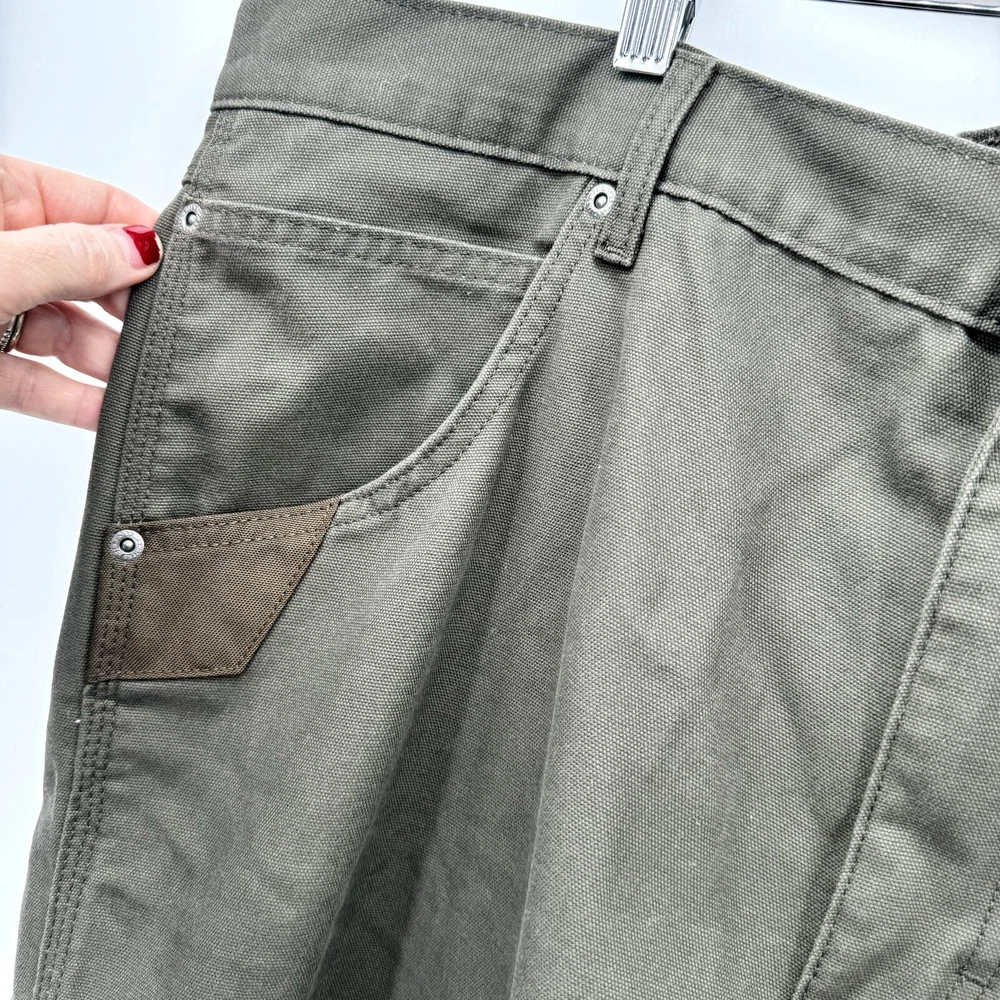 Wrangler Workwear Pants Mens 38x30 (38x31 ACTUAL) Brownish Green Relaxed Fit Utility Very good condition, ha some marks/discolorations, see all pictures for views. •Waist: 38" •Inseam: 31" •Rise: 13" Thank you for your purchase, we appreciate you!