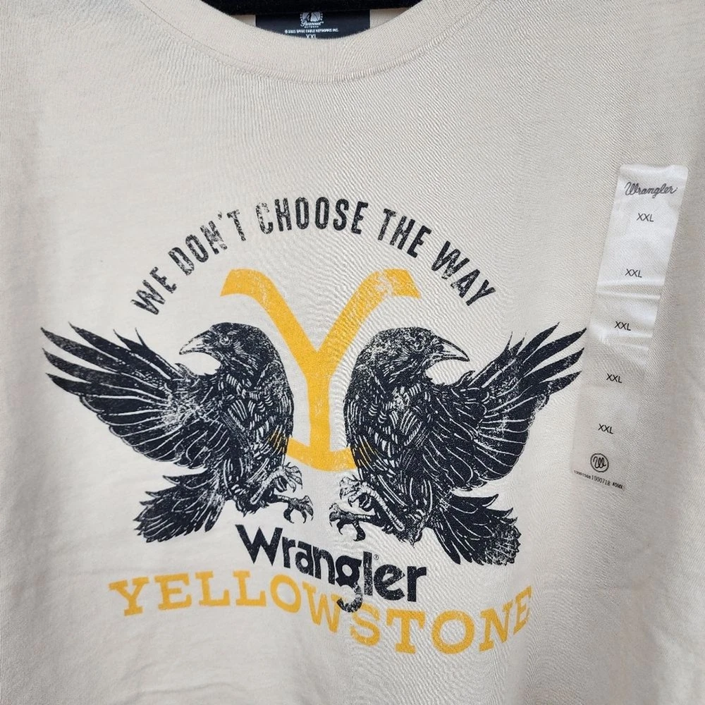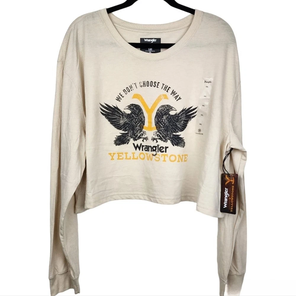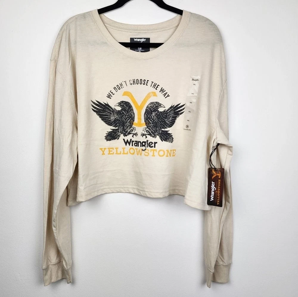 Wrangler Yellowstone Cream Yellowston Graphic T-Shirt Crop Top - New With Tag - Size XXL, see measurements pics, please - Yellowstone Graphics - 50%Cotton, 50% Polyester - Long Sleeve - Detailed Measurements in pics Shipping Same or Next Business Day! Thanks for watching! cotton blend yellowstone Dutton DuttonRanch TVSeries KevinCostner Montana teeTop, casual, levis, yellow red, comfort, cotton top, loungewear