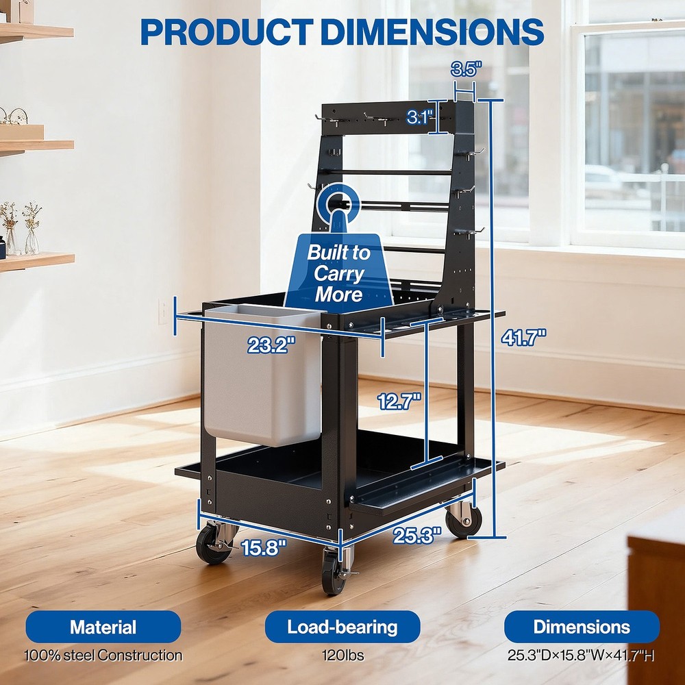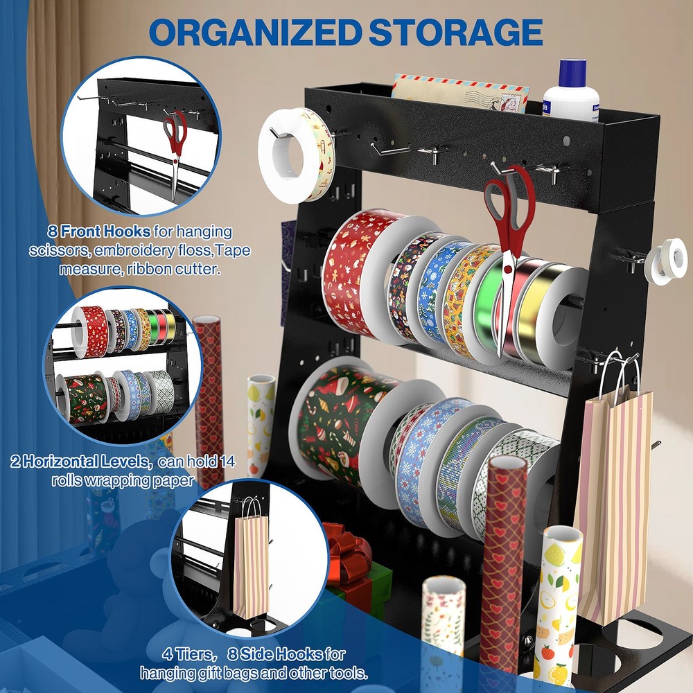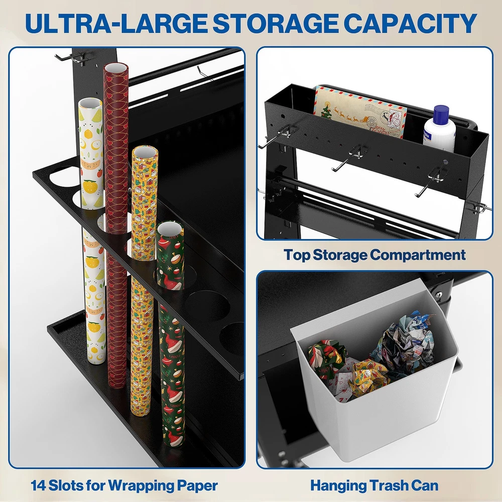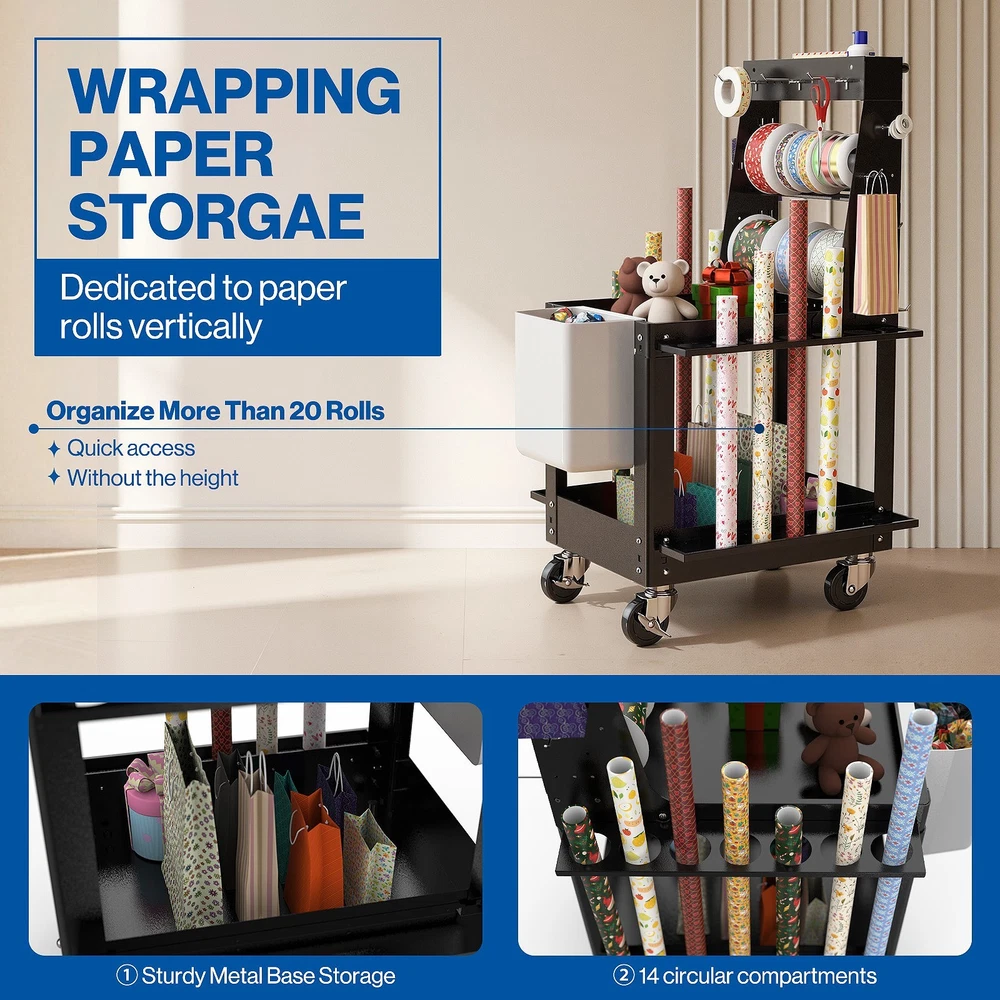 Pochar Wrapping Paper Storage Cart - Rolling Gift Wrap Station with Hooks Storage Ribbons and Gift Bags - Craft Wrapping Paper Organizer Holder with Tape Holder and Baskets for DIY Tools, Craft Supplies About this item: GIFT WRAPPING STATION: Tired of frantically looking for packaging tools when you need to wrap gifts? Pochar gift wrapping organizer cart can solve your problem. It neatly organized all gift wrapping tools in this gift wrapping organizer storage cart, equipped with a flat top for effortlessly wrapping presents. Keep your supplies within arm's reach and enjoy a tidy workspace with this rolling craft cart. AMPLE STORAGE FOR CRAFT SUPPLIES: This craft storage organizer features 2 row wrapping paper holder, can hold 14 rolls wrapping paper; and provides 3 spool in the middle, which can store ribbons, strings, tapes and hemp ropes, and more. The craft organizer holder provides 18 hooks and holes for hanging tools such as scissors, embroidery threads, packaging bags, and gift bags. EXTRA STORAGE SPACE: Our wrapping paper organizer storage cart is equipped with a storage compartment on the top, which can store small items such as markers, pigments and greeting cards. The ergonomic handrails at the back make it effortless for you to move the rolling craft cart. In addition, it provides a hanging trash can, allowing you to complete the gift wrapping task in one place. MOBILITY & DURABILITY: Move your craft cart effortlessly with its four 360° swivel wheels, two of which feature locking mechanisms for added stability. You can transport the craft supplies cart anywhere or secure the cart in place while you work. Made of 100% durable steel that ensuring the long-lasting in a high-traffic environment, ideal for schools, gift shop, shopping mall, boutiques, flower shop, and so on. EASY ASSEMBLY & WIDE APPLICATION: This DIY craft station can be assembled in just a few simple steps. Detailed videos and the customer service team in California will help you complete the assembly quickly. The practicality and durability of POCHAR Utility Storage Rolling Cart make it also suitable as a tool cart, cleaning cart, an office supplies storage cart and a multi-functional cart. This item is brand new . If you are interested interested in our open box discount visit our eBay store. All POCHAR products are sold with a one (1) year manufacturer warranty including replacement parts. Thank you for making eBay a great place to shop! Check our eBay Store Front for more product listings! POCHAR Sales | eBay Stores Thanks for shopping POCHAR! The actual color of the product may be different from the image you see. This is due to the fact that every computer monitor, laptop, tablet and phone screen has a different capability to display colors and that everyone sees these colors differently. We try to edit our photos to show all of our products as life-like as possible, but please understand the actual color may vary slightly from your monitor.