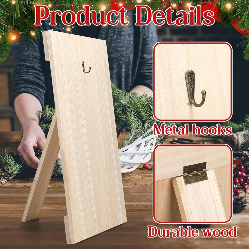 Features: Easy to Use: This wooden wreath display stand is easy to use and an essential tool for experienced wreath artists and beginners alike. The angle is easily adjustable, and the sturdy stainless steel hooks allow for uninterrupted creation. Premium Materials: This Christmas wreath display stand is made of solid wood, making it durable, lightweight, portable, and easy to store. It provides excellent support both indoors and outdoors. The natural wood grain adds a touch of vibrant color to the Christmas season. Specifications: Material: Wood Color: Natural Wood Color Size: 17 x 27 inches / 43 x 68 cm Package Includes: 1 wreath display stand On Nov 8, 2025 at 11:08:35 PST, seller added the following information: