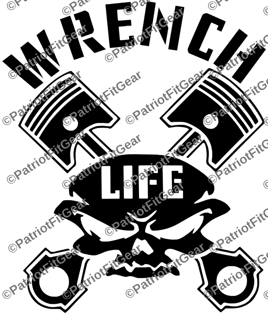 Wrench Life,Mechanic,Gear Head,Wrenching,Skull,Pistons,Stickers,Vinyl Decal PatriotFitGear SIZE IS Aprox 5"x6" If you need a different size please ask. Decal is Vinyl Cut so it will be one single color. The vinyl is 3MIL, resistant to Sun, Rain, Snow & Sleet. The decal will stick to any hard, smooth surface and are suitable for wet locations (Boat, Car, Car Window, Laptop, Instrument Cases, Snowboard Decks, School Lockers, Mirrors, etc.) An application (transfer tape) overlay allows for precise and easy placement. All decals are computer cut and are customizable. HOW TO APPLY STEP 1: CLEAN THAT AREA GOOD! First make sure you have a dry place and no wind to install your decal. Make sure to prep the area, this is the most important part of installing a decal! If you put your decal or sticker on a dirty surface, it will just pick that dirt and grime up like a lint roller does your shirt, those aren't so sticky after you use them are they! So let’s make sure the area is nice and clean so that it can adhere to where you are going to place it. You can use soap and water, rubbing alcohol, or any other fast drying cleaner. My favorite is rubbing alcohol since it dries by itself within seconds and leaves no residue behind. On that note, do NOT use anything like Windex or other household spray cleaners that leave a residue behind or oily substance, that defeats the purpose and will cause your decal/sticker not to adhere to the best of it capabilities. STEP 2: DECIDE AND PEEL ! After you have cleaned your car, you now need to decide where you want to center your decal in the area you cleaned. I use a measuring tape to measure from different spots on the car to make sure I have it exactly where I want it and that it will not turn out crooked. When I measure I use a piece of masking tape to mark the measurements, normally four for left/right/top/bottom. Then I have a somewhat boxed area to force me to place the decal where it should go. Be aware after you stick it, you might cannot undo it and use it again, since it can separate the design or text from each other. After you decide where you want it, go ahead and start to peel your decal back, if it doesn't stick to the transfer tape the first pull, replace the transfer tape and push it together with your fingers or use a credit card to press together. STEP 3: PLACE THAT DECAL! So you cleaned your area and also decided how and where you are going to place your new decal or sticker and you made sure your decal can peel apart easily. FOR SMALLER DECALS - Now fully peel the decal off the backing and hold it on the tips of the masking/transfer tape. Try not to touch the back of the decal itself since it could leave dirt on your decals back side. You should have each hand holding the furthest corners from each other and keep it tight so that the decal does not fold in on itself. Place one end of the decal down and then smooth it out to the other end till the decal is fully placed. FOR BIGGER DECALS - Do not fully remove the backing on your decal. You will want to remove about 1/3 of the backing and start by applying that 1/3 of the decal to the car. Then slowly pull more of the backing off while at the same time apply the decal to the car until you have fully installed the decal. Either work left to right or right to left, which ever you feel best doing. Don't forget you can always buy a $1 spray bottle at your dollar store, put ONE small drop of soap in it and fill with water and shake. Then LIGHTLY (I MEAN LIGHTLY) spray the area and then apply the decal. This is only suggest for bigger decals or decals that you need to be in a precise area. STEP 3: THE HARDEST PART! Waiting... yes this is the hardest part, because most people are so impatient that they can't wait and they mess up the decal by removing the transfer tape too early! The best way to allow your decal to dry is out in the sun, having it in the shade or in a cool place will only make it take longer. If you used a mist of soapy water when installing your decal and do not let the sun dry it, then it will take a very long time before it adheres correctly, since nothing is there to remove the water and dry the decal to the surface. Do not try and rush this buy using a heat gun, you can melt the transfer tape and vinyl and when you peel it, it could cause the decal to stretch with the transfer tape. Again the best way is the sun. Finally just give the decal 30 minutes before you remove the transfer tape, go inside and eat lunch. By the time you’re done you should be able to go back outside and finish your decal and be in a good mood from that great lunch and nice cold sweet tea! If your decal is still not sticking, make sure you got it in the sun and it is warm outside, and just give it a bit longer. After ~30 minutes to dry, remove transfer paper.
