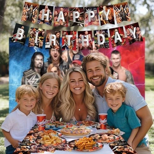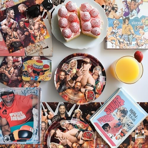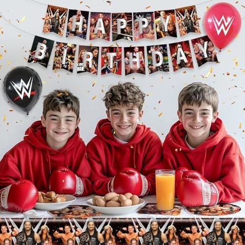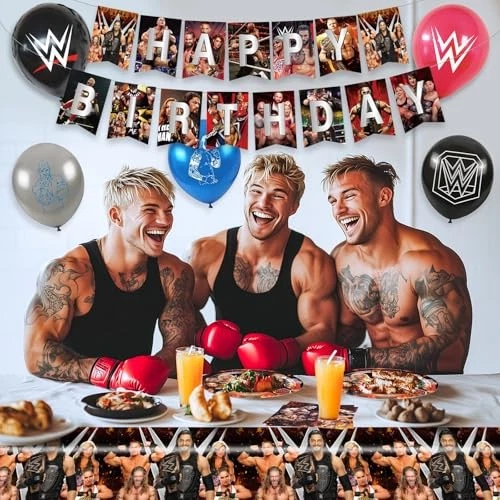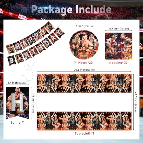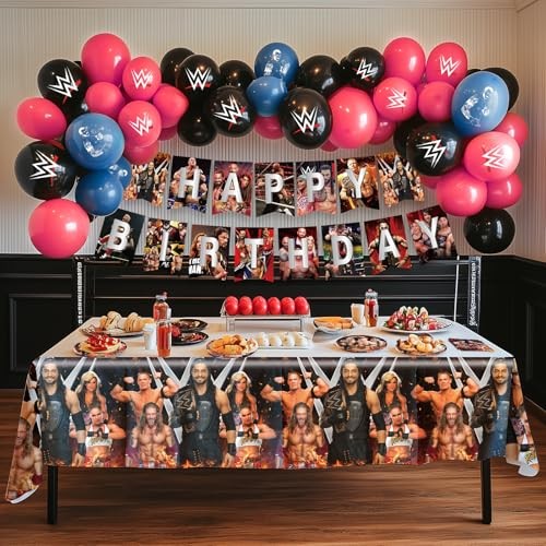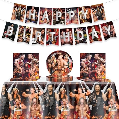 Wrestling Birthday Supplies, 42Pcs Wrestling Decorations include Banner,