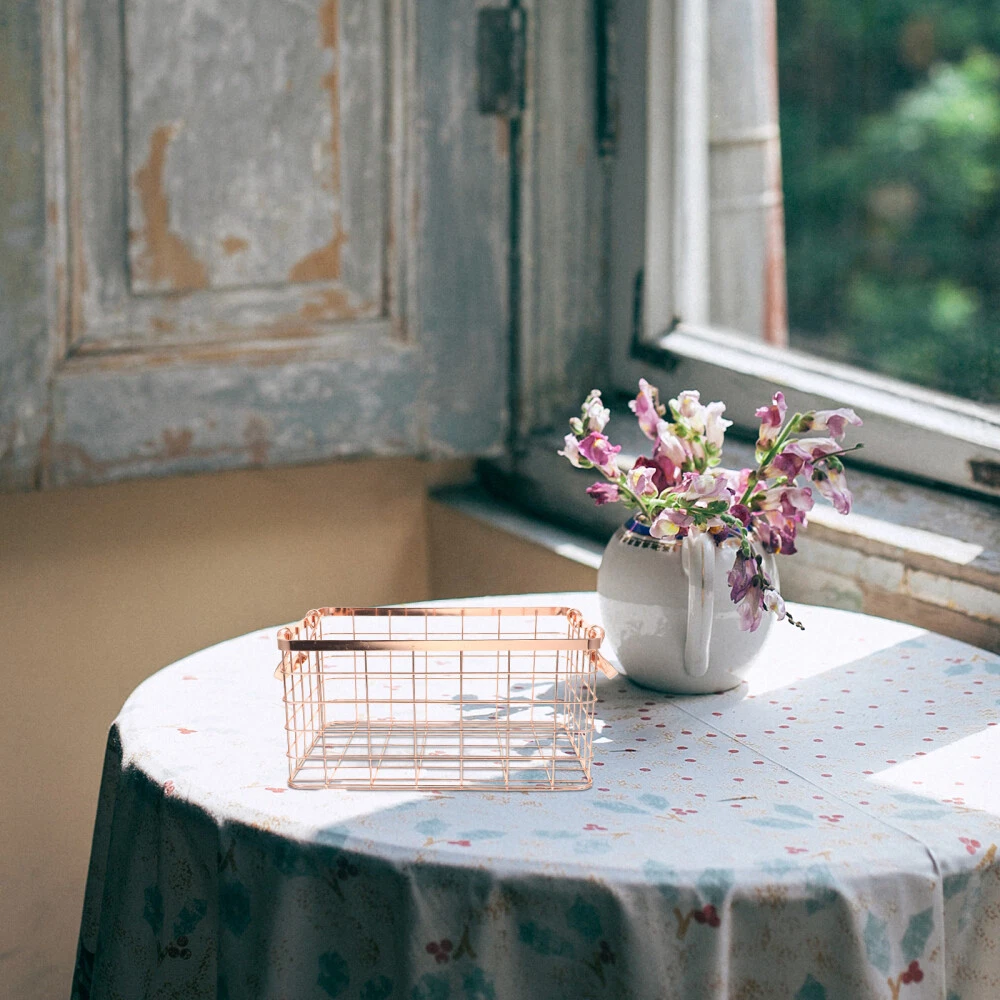 Wrought Iron Square Storage Tray Basket with Lid for Food Organization