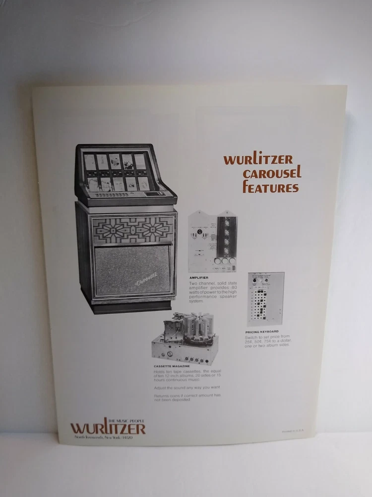 Wurlitzer Carousel Cassette Tape Jukebox Flyer Foldout Phonograph Art 8.5" x 11"