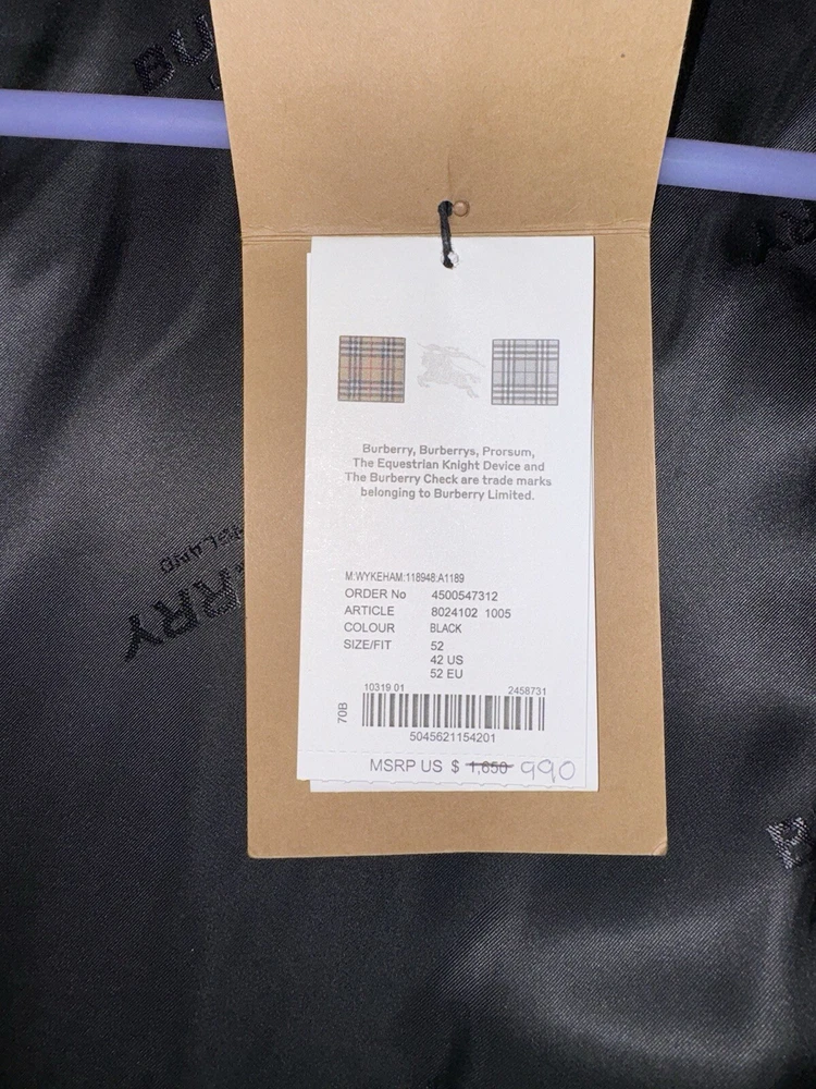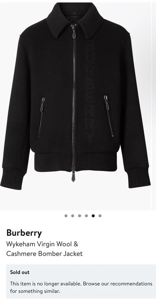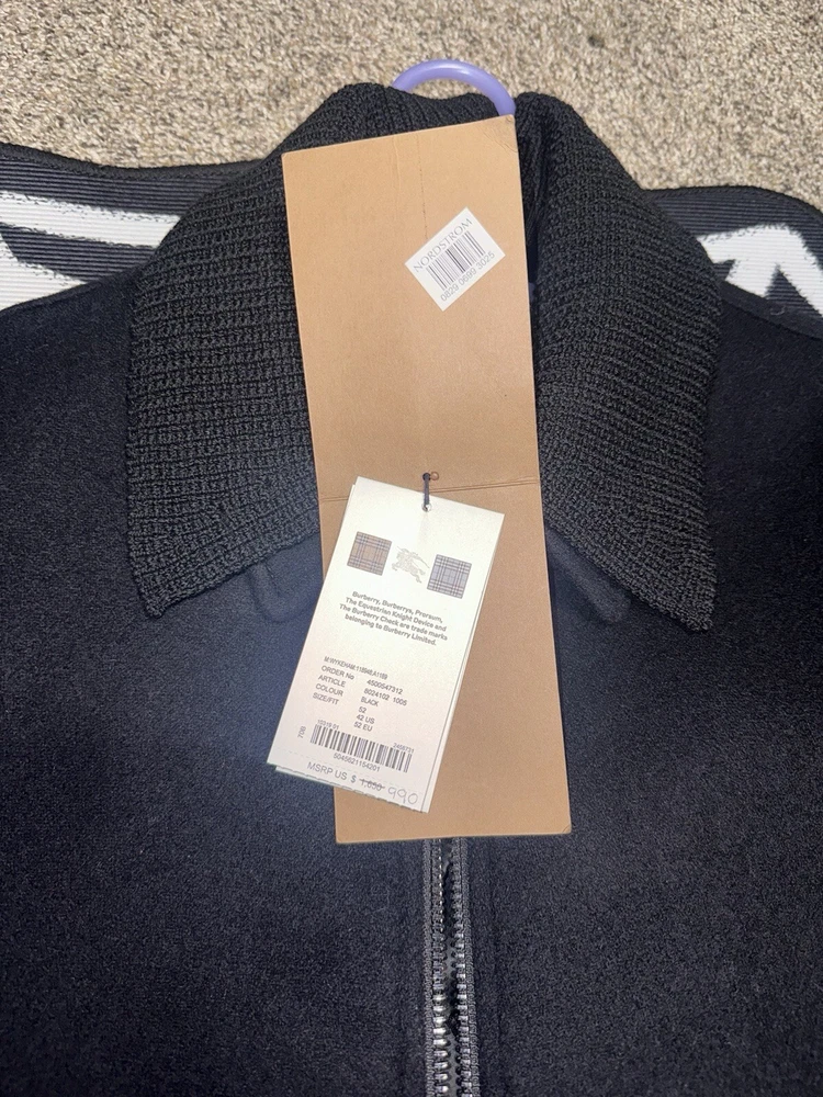Size info True to size. Considered a Slim fit; fitted through the chest, armholes and sides. EU chest sizing: 46 EU=36 US, 48 EU=38 US, 50 EU=40 US, 52 EU=42 US, 54 EU=44 US. Get the fit you want. Book an appointment with our onsite experts or stop by your nearest store. Learn more about alterations. Details & care Take a casual outing to a luxe level in this classic bomber, zipped with topstitched pull-tabs and cut from a sumptuous blend of virgin wool and soft cashmere, 26" length (size 46) Front zip closure Spread collar Ribbed cuffs Front zip pockets Lined 88% virgin wool, 12% cashmere Dry clean Imported Item #5962445 Gift I bought for my husband on his birthday, and he did not want it, he has too many alike lol. Original price was $1,650 but I bought the coat $990 plus tax. Still brand new with all of the tags, haven't worn once! This includes the garment bag if wanted for an additional $40. It DOES NOT include the Burberry name logo on the front but does have the Nordstrom scan able QR code within the pricing tags.