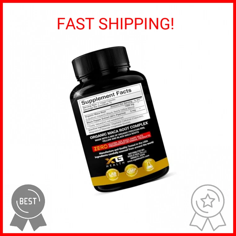 X Gold Health Organic Maca Root Powder Capsules 1500mg with Black | Red & Yellow Peruvian Maca Root Extract Gelatinized, Energy & Mood Supplement for Men & Women + Black Pepper for Best Benefits - STRONG PREMIUM BLEND OF THREE ORGANIC MACA ROOTS (BLACK, RED & YELLOW). X Gold Health Maca Capsules contain 1500mg of the highest quality Organic Maca root in each serving. Our Maca is organically grown in Peru We've combined a unique premium blend of three specially sourced Maca root extracts, black, red, and yellow, a powerful natural complex. - READY TO REVITALIZE? Our Maca blend is a powerful natural complex, giving you the energy to do what you love, and more natural energy to fully enjoy your life, every day. Enjoy productive workouts with more stamina, more vigor, and enhanced performance. - SUPERIOR ABSORPTION & BENEFITS: Our premium Maca blend root is gelatinized for easier digestion and increases the nutrient concentration for more potency (Gelatinized is the process by which the Maca is boiled to remove the starch, resulting in more purity). It also features Black Pepper for maximum absorption, to help your body absorb the nutrients it receives more efficiently and to enhance benefits.* - BEST QUALITY: Best of all, you can take our brand with confidence because it has been proudly made in the USA. We use Certified Organic Peruvian Maca, non-GMO, vegetarian, vegan, gluten free, with no synthetic fillers and no animal gelatin. You get the purest grade of Maca to help you live a purer quality of life with more energy. - MONEY-BACK GUARANTEE - It's simply the purest, most potent Organic Maca Root Complex on the market today. We want you to love this product. If for any reason you are not satisfied, just let us know and you will be refunded fully, no questions asked! Payments We accept the following payment methods PayPal Support Our dedicated customer support team is here to assist you from 9AM to 5PM Monday through Friday, excluding public holidays. Should you reach out to us and not recieve an immediate response, it's likely due to a higher-than-usual volume of inquires. We want to reassure you that your concerns are important to us, and we're working dilligently to get back to you. Expect a response by the next business day at the latest. Your understanding and patience are greatly valued as we strive to provide you with the best support possible! Shipping All orders are processed within 5 business days. Shipping estimates may be shown on this listing by eBay, and these are often not an accurate reflection of our shipping times. If we are experiencing a high volume of orders, shipments may be delayed by a few days. Please allow additional days in transit for delivery. If there will be a significant delay in shipment of your order, we will contact you via message. Shipping rates & delivery estimates Shipping is often free, but if charges for your order apply they will be calculated and displayed at checkout.