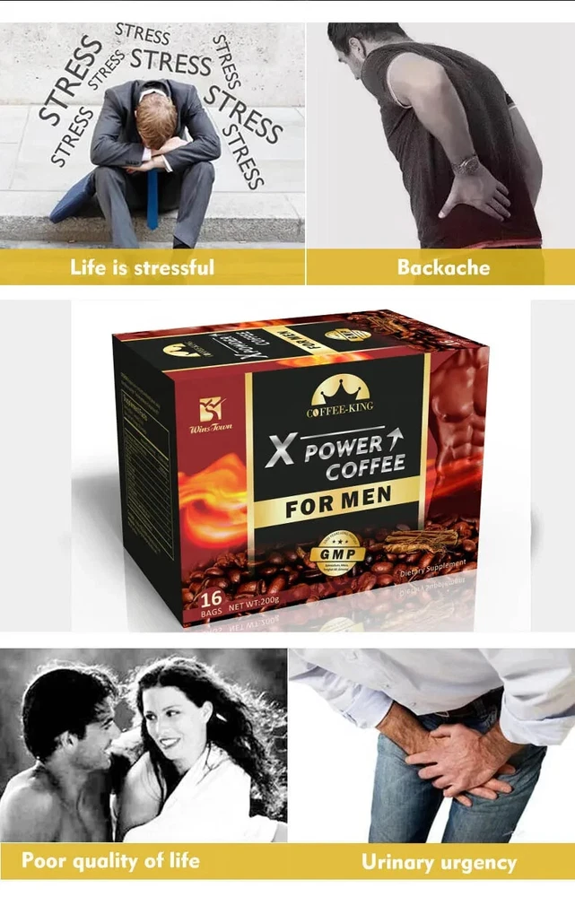 X Power Coffee for Men Herbal Supplement Coffe Energy Maca More Control 16 Bags
