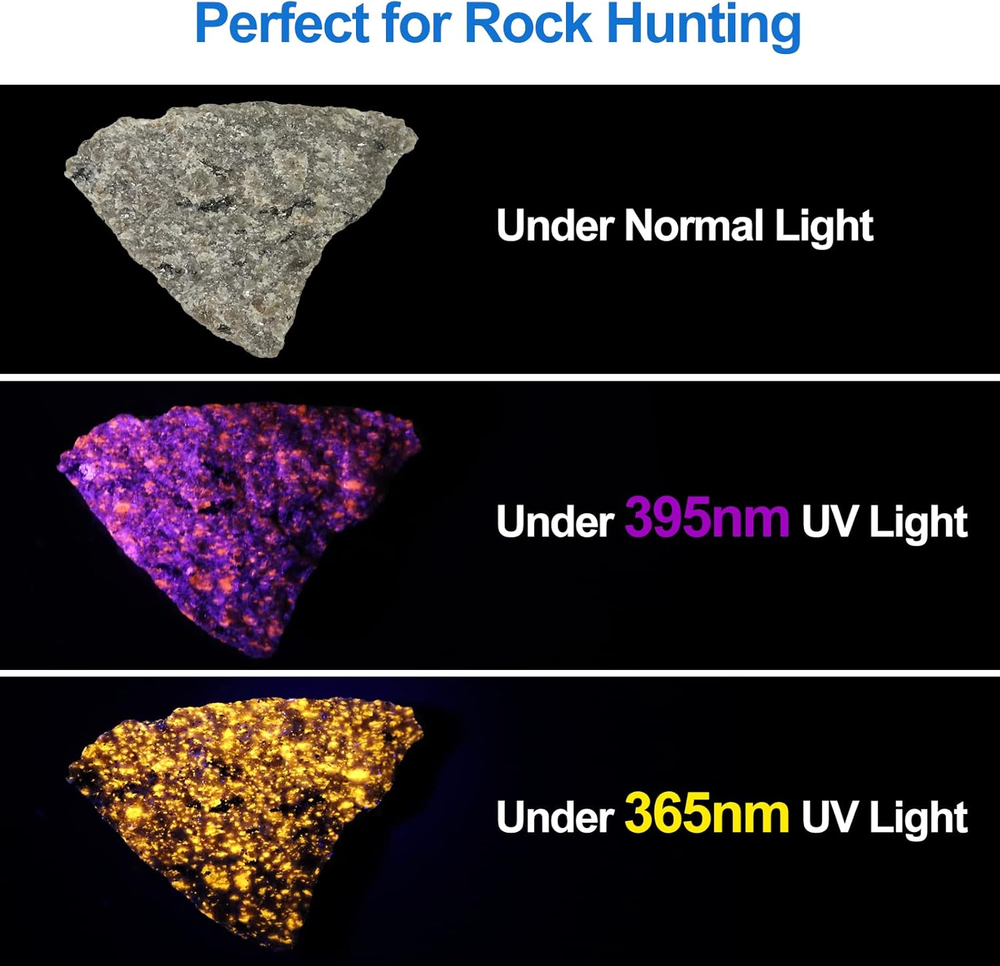 【Precisely Find Invisible Stains】Compared with the 395nm UV light flashlight, the 365nm black light flashlight can find more stains invisible to the naked eye more clearly and accurately. You no longer need to clean your carpets blindly, 365 nanometer black light flashlite could exactly detect dog/cat dry urine stains, food stains, bed bugs, and more invisible stains on your carpet, bathroom, furniture, or kitchen wall. NO MORE PAYING FOR PROFESSIONAL CLEANERS. Suit for home and Hotel room. 【Rock Hunter's Dream Flashlight】It is one of the must-have 365nm UV flashlights for rock hunters. Because 365nm ultraviolet light can bring out its best in rocks and stones that contain fluorescent minerals, perfect for rock hunting, looking for yooperlite rocks. Only under 365nm UV light does the yooperlite rock have a bright orange glisten, 395nm UV light does not. 365nm UV light flashlight makes the glowing rocks "pop" out making them easier to find. 【Multi-purpose Use】365nm UV blacklight flashlights can easily spot scorpions in dark environment; cat ringworm detection; authenticate currency, driver's licenses, official id cards, passports, invisible ink pens; cure resin and identify tomato hornworms that are harmful to the garden. NOTE:Works better in dark environments, due to UV light having a shorter wavelength, it will be dimmer than regular white light flashlights. Just like we are unable to see the presence of UV light with sunlight. 【Prmium Black UV Filter Lens】Upgraded 365nm Ultraviolet flashlight equipped with hard toughened black filter optical lens that can filter out foreign light from the environment, which makes the ultraviolet light purer and more powerful. Filtered 365nm UV is considered the gold standard sweet spot for UV users. 【Ready Out Of The Box】The pocket-sized black light flashlight can be carried anywhere. WHAT WILL YOU GET? Vansky 365nm UV Light Pet Urine & Stain Detector Blacklight Flashlight x 1, AAA Standard Alkaline Battery x 6 (Included), User Manual x 1. Product Description Pet Stain Detection Revealing dry dog and rodent stains and unfavourable spots that couldn't see with the naked eye. House/Hotel Cleanliness Inspection Check whether the house/hotel sheets and pillows are clean. Spot Hard-to-find Scorpions Helps you spot hard-to-find scorpions while camping, adventure or indoor. Uranium Glass Inspection Better inspection of uranium glass by using 365nm UV flashlight. 1 Pet Stain Detection 2 Cleanliness Inspection 3 Find Scorpions 4 Uranium Glass Inspection Specific Applications for 365nm UV Flashlight: Pet Urine Detection (Note: Only for dried urine stains in dark environments.) Rock Hunting/Looking for Yooperlite Rocks Spot Hard-to-find Scorpions Find Tomato Hornworms UV Resin Curing ID/Currency Verification Leak Detection What's in the box? 1 x 365nm UV Flashlight; 1 x User Guide; 6 x AAA Alkaline Battery ( NOTE: If 365nm UV light flashlight is not used for a long time, please take out the battery, otherwise the battery holder will be corroded by the battery. ) Frequently Asked Questions: Q : Why do we choose 365nm UV light flashlight instead of 395nm UV light flashlight? A : Compared with the 395nm UV light flashlight, the 365nm black light flashlight can find more stains invisible to the naked eye more clearly and accurately. Only under 365nm UV light does the yooperlite rock have a bright orange glisten, 395nm UV light does not. 365nm UV light flashlight makes the glowing rocks "pop" out making them easier to find. Q : Why is some cat urine undetectable by UV light flashlight? A : Because cat urine contains small amount of minerals or elements (mainly phosphorus) that fluoresce under ultraviolet light. However, some cats eat foods and water that are low in phosphorus, so they have low levels of phosphorus in their urine, so their urine may not be detectable with UV light flashlight. Batteries Installation Guide Please use new 6*AAA alkaline batteries; Confirm whether the batteries with polarity are installed correctly; ( NOTE: Sometimes if the flashlight doesn't work, it may be caused by the reverse installation of the positive and negative poles of the battery. ) And confirm whether the battery holder is placed in the correct position. ( Pleases follow the arrows on the battery tube. ) The video showcases the product in use. The video guides you through product setup. The video compares multiple products. The video shows the product being unpacked.