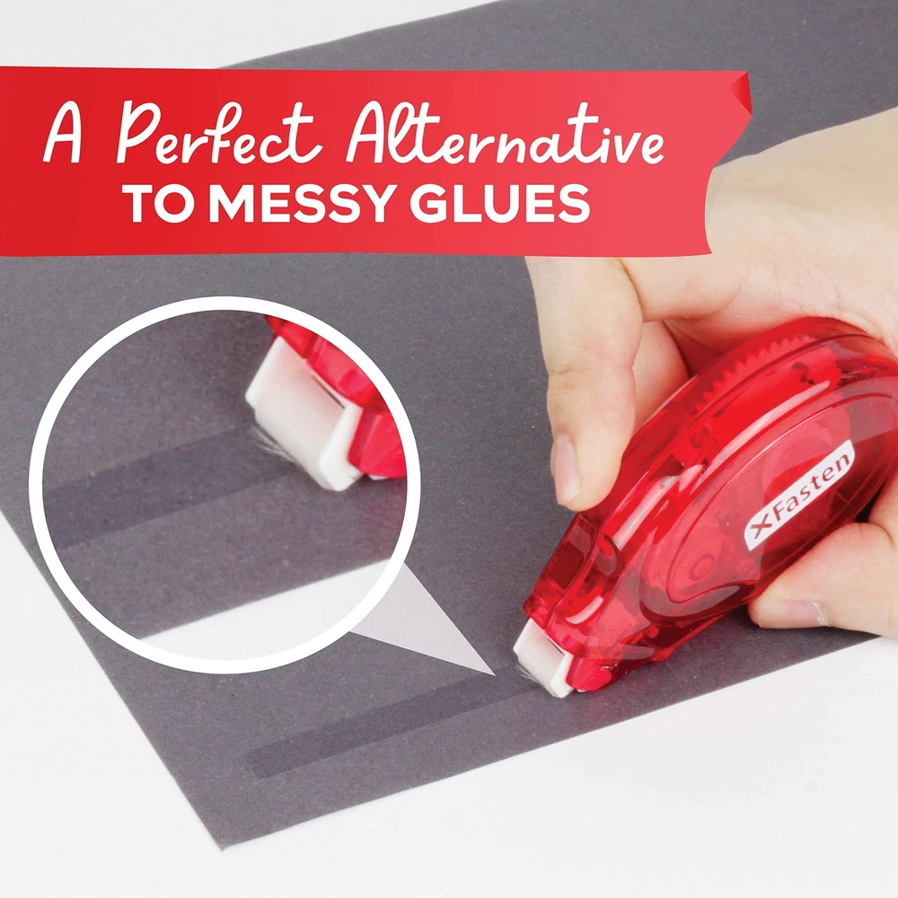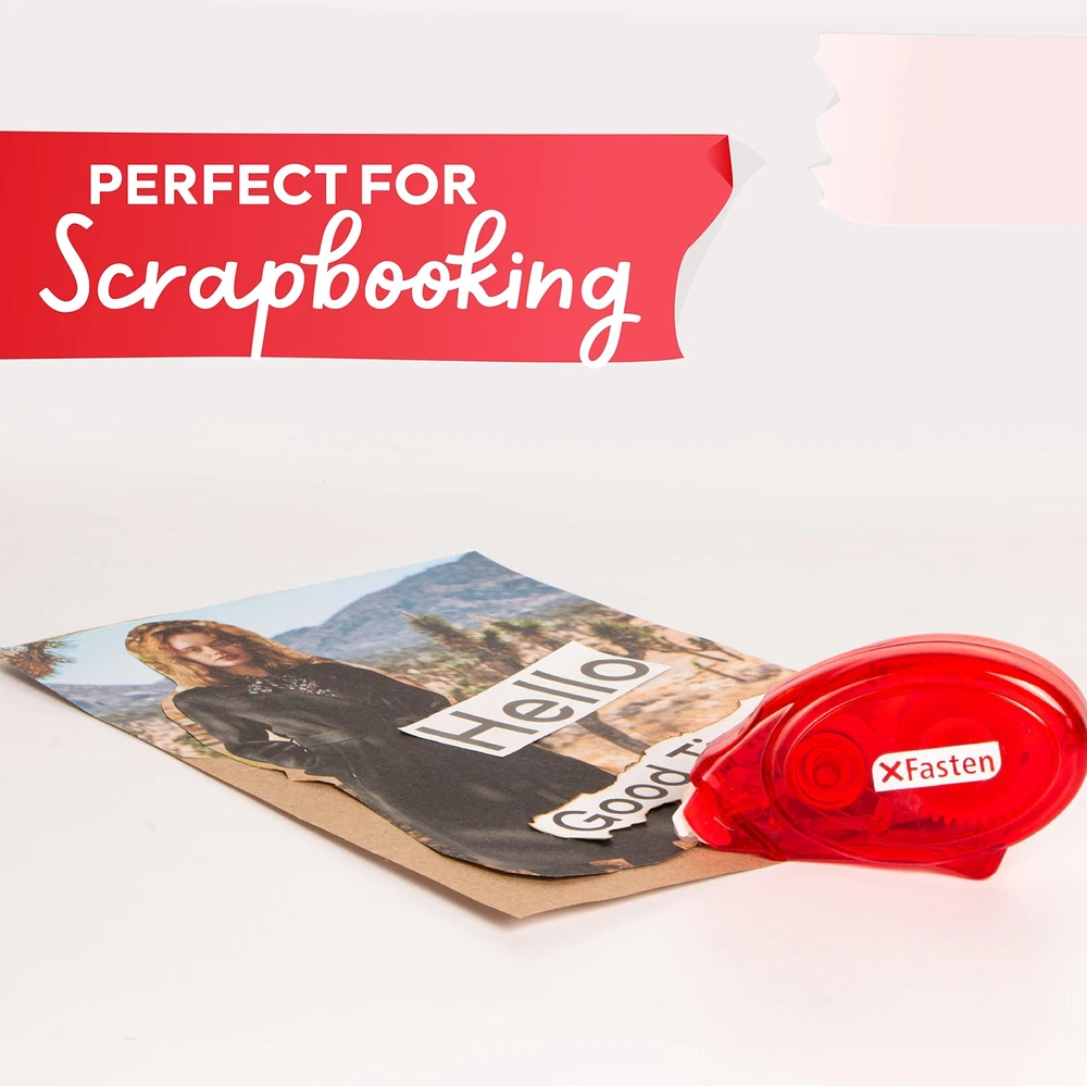 XFasten Double Sided Adhesive Scrapbook Runner Tape Roller, 0.3-inch by 360-I... Product Overview Size: 8-Pack, 0.3-inch by 360-Inch Color: Red Shell (Clear Tape) About The XFasten Adhesive Rollers Why Choose The XFasten Adhesive Rollers? Perfect for Scrapbooking These double sided tape dot applicators are perfect for scrapbooking because it's so easy to use and doesn't ruin your overall design. Smooth & Jam-Free Applicator It does not turn yellow, dry out or become gooey even after a long time - making it a perfect tape that's ready to use anytime. Clean & Mess-Free Application These are the double-sided adhesive tape runners for card making because it's easy to use and doesn't ruin your design. Residue-Free & Surface-Safe Strong enough to hold high density paper and kraft materials while still being residue-free, surface-safe, and mess-free. Previous page Next page 1 Test The Surface 2 Hold The Surface 3 Improve Strength Level Up Your Scrapbooking Game XFasten Adhesive Rollers The XFasten Adhesive Roller is a light-duty scrapbooking tape that is calibrated for home, office, and enterprise use. It features a jamming-resistant applicator that allows for quick dispensing and cutting of tapes - giving you more mileage over time. It's a welcome alternative to messy glues - especially for school and office work. Bring the XFasten Adhesive Roller anytime, anywhere. It has a protective tip cover to avoid the adhesive from sticking in your bag. How convenient! The XFasten Adhesive Rollers Collection Adhesive Roller Adhesive Roller Adhesive Roller Adhesive Roller Adhesive Roller Adhesive Roller Quantity 4 Rollers 8 Rollers 12 Rollers 24 Rollers 4 Rollers 8 Rollers Width 0.3" 0.3" 0.3" 0.3" 0.3" 0.3" Length 360" 360" 360" 360" 360" 360" Shell Color Red Red Red Red Red, Pink, White, Yellow Red, Pink, White, Yellow Adhesive Color Clear Clear Clear Clear Clear Clear Double Sided ✔ ✔ ✔ ✔ ✔ ✔ Features Acid free and archival safe double-sided adhesive tape roller that is ideal for scrapbooks, photos, and school projects. Equipped with a smooth and jam-free Adhesive Dot Roller Applicator that dispenses quickly without getting stuck, saving you time. Permanent and instant bonding. Ideal for school, gift wrapping, scrapbooking and home projects that require a clean and mess-free scrapbooking tape application. EMPOWERS average users to craft PROFESSIONAL-GRADE PROJECTS thanks to its clear surface and mess-free installation. The portable roller applicator operates smoothly without any jamming, cutting the time and effort required so that you can FOCUS MORE ON YOUR PROJECTS. Photo-safe and has a long storage and shelf life. Details Product Dimensions : 6.49 x 3.46 x 1.96 inches; 7.37 Ounces Date First Available : July 9, 2019 Manufacturer : XFasten Best Sellers Rank: #3,766 in Arts, Crafts & Sewing (See Top 100 in Arts, Crafts & Sewing) #50 in Arts & Crafts Tape #156 in Scrapbooking Adhesives #50 in Arts & Crafts Tape #156 in Scrapbooking Adhesives Customer Reviews: 4.2 out of 5 stars 2,183 ratings Quality Products Have peace of mind knowing that your order will arrive original factory sealed packaging. That means that you'll have the full force of the manufacturer's warranty to protect your purchase. Fast and Free Shipping You're already purchasing the item. Why pay additional for shipping, especially slow shipping? We get your order shipped out and delivered to your doorstep as quickly as possible. Commitment We are committed to making sure that you leave this transaction satisfied. That means having access to real people that get your questions and concerns answered quickly. Give us a shot and we will make sure that you will look to us again!