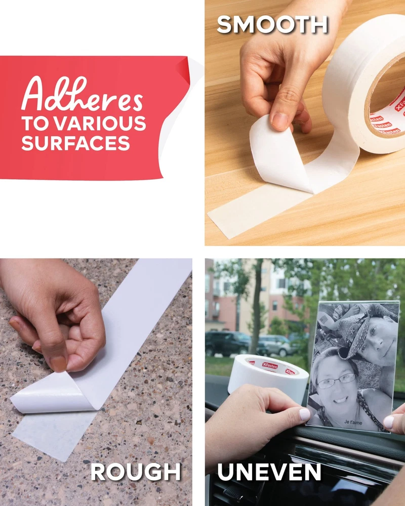 This double-sided tape is a game-changer for DIY projects! No scissors needed—just tear by hand for quick, clean cuts. It sticks strong to any surface, smooth or rough, and holds up reliably. Perfect for crafts, home repairs, or even temporary fixes. The adhesive is strong but removes cleanly when needed. Super easy to use and saves so much time compared to regular tape. A must-have for any household!