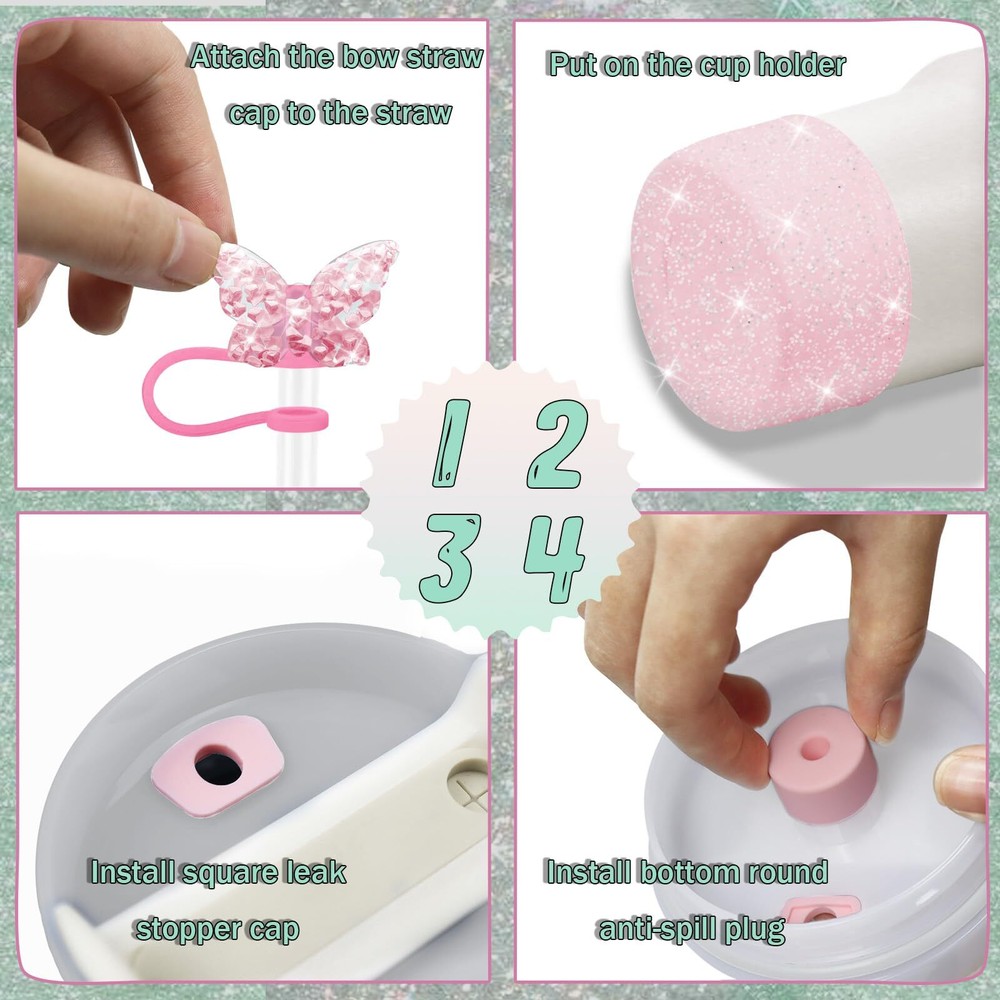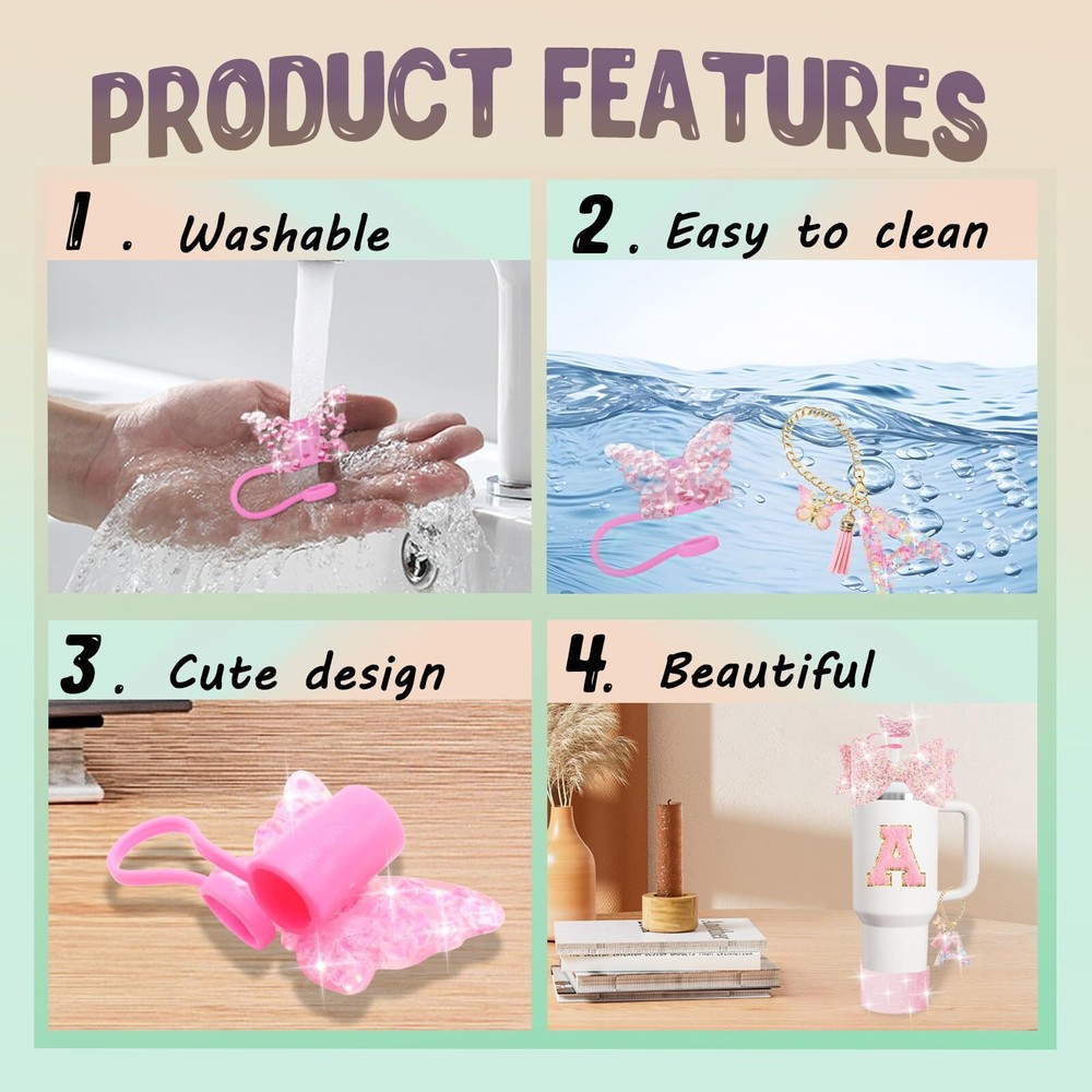 XIANGYUAN 8PCS Stanley Cup Accessories Set for Stanley Cup 30oz 40oz Tumbler with Handle,Including Straw Topper Cover Cap and Boot,Spill Proof Stopper,Handle Charm,Initials Sticker (Pink A) Package Includes:The accessory set is a must-have for anyone who owns a cup for Stanley 40oz or 30oz.1pcs pink butterfly straw cap,1pcs square spill-proof stopper and 1pcs round lid leak-proof stopper,1pcs replacement straw cover,1pcs towel embroidered letter sticker,1pcs pink Butterfly Pendant,1pcs pink silicone boot cover.It enhances the functionality of the Stanley Cup,making it more suitable for various occasions,sufficient quantity for your daily use. Note: This product does not contain cups! ! ! Fashionable design:Reusable straw cover adopts a butterfly shape design, which is very cute and attractive,suitable for party decoration and daily use. Convenient to carry with you,easy to clean,but remember to only wash it by hand Boot Protection:The silicone boot for Stanley 40oz&30oz tumbler can protect your cup from collision, scratches or drops, and will not make a noise when placing it on the table. It include air hole on the button, you can easy to put on and take it off Initial Letter cup pendant: This resin Letter cup pendant is not easy to break. Come with a resin butterfly. Unique Initial letter design, customize your exclusive name cup pendant Beautiful appearance:Our products have beautiful appearance and beautiful appearance.in addition,the bow and butterfly straw cap echo,and the cup holder makes the bottom of your cup less prone to scratches.With its unique styling and sparkling look Can be reused Note you can only wash it by hand The accessories are a delightful addition, especially the lettering which adds a personal touch to daily hydration snug fit ensures they stay in place even when on the move. The compact design does not interfere with the use of straws or cups, maintaining the convenience of a cup. Easy to Clean you can only wash it by hand Fits All Colors of Cups: The charms, Leak Stopper and straw cover slide easily and they can be switched between different cups. boots are thickened, non-slip and noise-reducing to prevent dents and damage to the cup, Shipping We offer FREE shipping on all orders! We ship within Three business days of payment, usually sooner. We use a selection of shipping services such as UPS, FedEx, USPS etc. We only ship to the lower 48 states, no APO/FPO addresses or PO Boxes allowed. Local pickups and combined shipping options are not provided at this time. Return You can return a product for up to 30 days from the date you purchased it. Any product you return must be in the same condition you received it and in the original packaging. Please keep the receipt. Feedback Customer satisfaction is very important to us. If you have any problem with your order, please contact us and we will do our best to make you satisfied. Contact Us If you have any queries, please contact us via ebay. We usually respond within 24 hours on weekdays. Please visit our eBay store to check out other items for sale! Thank you for shopping at our store.