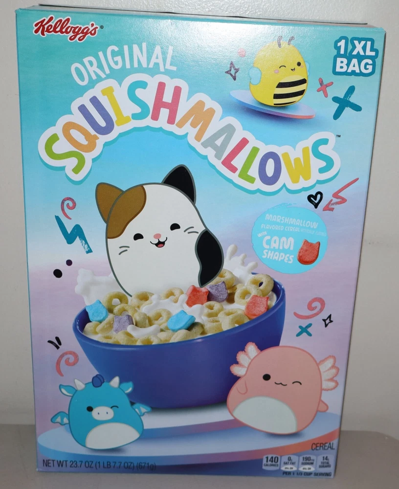 The XL Bag Squishmallows cereal is a limited edition offering by Kellogg's, weighing 23.7 oz and containing 3 packs in total. This breakfast cereal product falls under the category of Breakfast Cereals, Muesli & Oats and is typically found in the Pantry aisle. The XL size and the inclusion of Squishmallows characters make this cereal unique and appealing to fans of both Kellogg's products and collectible items.