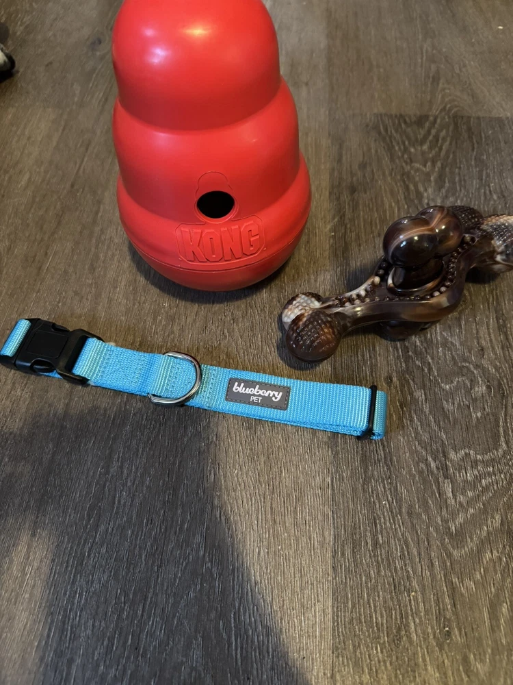 XL Dog KONG Classic Dog Rubber Chew Toy & Collar Bundle