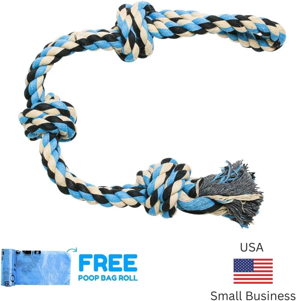 Dog Rope Toy Benefits Non-Profit Animal Rescue: A large portion of all proceeds from all of our rope dog toys are donated to our Non-Profit Dog Rescue. Thank You for helping to save a life! Made With Responisbly Sourced Materials: We make our dog toys as a labor of love, so we make sure all rope dog toys are high quality. Tug Toy for Dogs is Made of Cotton, so is Gentle on Your Dog's Mouth. Your large dog will love this rope toy for fetch or tugging games - it will hold up during tough tug of war games! Tug Rope For Dogs Is Made For Large Dog Breeds: XL dog toys measuring 23.5 inches makes the perfect dog tug toys for large dogs. This is a big rope toy for large dogs that will withstand tough chewing and rough tug of war between you and your dog, or a game of tug between 2 dogs Dog Pull Toy Is Durable: This is a dog rope toy for aggressive chewers; Dog rope toys for large dogs; Has 3 knots on dog rope for a strong grip, making the ultimate dog tug rope and tug of war rope for dogs Large Dog Pull Toy for Tug of War: We know how hard it is to find rope dog toys for large dogs that will actullay last. Look no further! This dog tug toy is made for large and extra large breeds, but also is a dog chew toy for medium dogs, too. Also is a puppy teething toy for large breed puppies. Includes Roll of Poop Bags - Poop bag roll comes with funny sayings with every extra large dog rope toy for aggressive chewers. Dogs will love playing with their rope toys for large dogs and then will want to go for a walk with their dog poop bags! Product Description Pacific Pups Products XL Dog Rope Toys for Aggressive Chewers Keep your furry friend happy with durable dog rope toys. Perfect for playing tug of war dog toy and promoting healthy exercise. tug of war dog toys, dog pull toys. Dog tug toys for large dogs designed for large dogs Give your pup a fun and engaging rope toy with our selection of dog ropes toys Kong Dog Rope Toy for Aggressive Chewers Large breed Durable rope dog chew toys for large breed aggressive chewers. Kong rope toys for dogs, perfect for chewing and tugging. Heavy-duty dog tug rope toy. These rope dog toys include kong rope dog toys for aggressive chewers to keep your furry friend happy with kong dog rope toy for aggressive chewers Durable Dog Tug of War Toys for Aggressive Chewers. Dog Pull Toys for Large Dogs. XL Dog Rope Toys to Keep Your Dog Busy Large Tug Toy for Dogs Rope is 23.5 in long, Large Breeds & Medium Breed Dogs Love our Large Dog Toys for Aggressive Chewers Dog Pull Toy for Large Dogs, Perfect Size XL Rope Dog Tug Toy, Kong Rope Dog Toys for Aggressive Chewers Dog Chew Rope is a great outdoor dog toy and for indoors! Our Rescue Dogs Happily Test the Durability of all of Dog Rope Toys for Aggressive Chewers ABOUT THE XL DOG ROPE TUG TOY: Extra Large Dog Rope Toys for Aggressive Chewers or Durable Rope Toys for Large Dogs of Large Breed, Perfect for Playing Tug of War Dog Toys Rope Giant 23.5 IN Rope for Large and XL Dogs! These XL Dog Rope Toys for Dogs Large Breed are Made to Last Large Rope Dog Toy is Perfect for Large Breed Dogs Large Breeds & Medium Breed Dogs Love our Large Dog Toys for Aggressive Chewers Help Save a Life When Purchasing Pacific Pups Products Toys! Our Rescue Dogs Test the Durability of all of Our Dog Rope Toys for Aggressive Chewers,