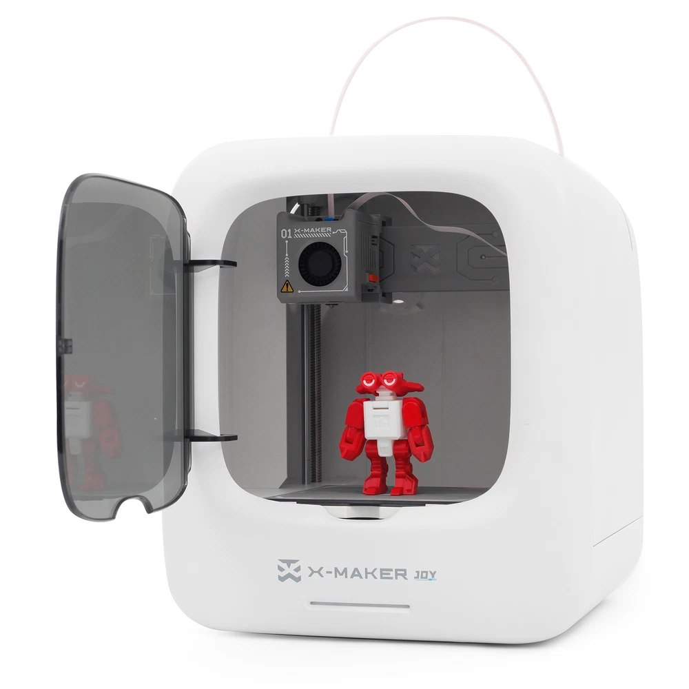 Features: [3D Print with Ease] Dive into 3D printing with ease using the X-MAKER JOY! Just one click through our smart app, and your creation begins. The intuitive software and user-friendly interface make it easy to design and print their creations, bringing their ideas to life. Our app is compatible with iOS, Android, and Windows platforms, making it accessible to everyone in your family. [High Print Quality & Quick Swap Nozzle] Top-notch print quality with the 3D printers big size and say goodbye to clogging with our quick-change nozzle system. This printer delivers precision at 0.05mm resolution and speeds up to 200mm/s, ensuring crisp, detailed models every time. Its quick-change nozzle system simplifies maintenance, enhancing your printing experience by keeping it efficient and hassle-free. [DIY Fun: Personalize Your Printer] Unlock personalization at its best with the X-MAKER JOY! This enclosed 3D printer features an innovative DIY interface that allows for the customization of the printer's appearance, letting express their unique style. By utilizing the DIY interface, users can apply and modify external decorations directly, making the printer not just a tool for creating 3D objects, but also a canvas for personal expression. [Capture Creativity: Built-In Camera ] Built-in high-definition camera. This advanced feature enables remote monitoring of the printing process via your smartphone, capturing every detail in real-time. The printer automatically generates time-lapse videos, allowing you to share the fascinating progression of your projects from start to finish. Celebrate and share your growth and imagination with friends and family. [Hassle-Free Setup: Effortless Connectivity] Simplify your printing experience with the 3D printer. This 3D printer features a leveling-free bed that automatically ensures the optimal distance between the nozzle and the printing surface, promoting consistent and high-quality prints. Additionally, it connects via Wi-Fi, providing stable and seamless connectivity. Forget about the hassle of complex setups. Unbox, connect and start creating with ease. Specifications: Product name: X-MAKER JOY 3D Printer Product Model: V4.0 Build Volume: 120x120x120 mm Nozzle Diameter: 0.4mm Nozzle Temperature: ≤265℃ Heatbed Temperature: ≤110℃ Supported Filaments: PLA ONLY Printing Technology: Fused Filament Fabrication (FFF) File Transfer: WiFi Printable File Format: Xcode / Gcode Software:X-PRINT slicer / X-MAKER App File Formats for Slicing: STL / OBJ UI Languages: Chinese / English User Interface: Simplified LED Indicator Print Speed: 120 - 300 mm/s Layer Resolution: 50 - 300 microns Filament Diameter: 1.75 mm App Design: AI Voice interface with kid-friendly design Model Library: Kid-oriented models with playful themes Design Tools: Basic design tools for easy creation Printing Features: One-click printing, enclosed design for safety Input: 100-120V~, 200-240V~, 50/60Hz, 1.6A USB2.0 Output: 5V 0.5A Rated Power: 60W Product Dimensions: 290x270x310 mm Package Dimensions: 340x360x410 mm Net Weight: 4.0 kg Gross Weight: 5.5 kg Note: Due to long-distance transportation, the Hotend (gray box) of the X-MAKER JOY may become dislodged from its slot, potentially affecting print quality. To ensure optimal performance, please follow these steps to reattach the Hotend:1. Turn off the power. 2. Unscrew the two screws above the Hotend. 3. Set the Hotend and screws aside. 4. Reinsert the Hotend into the correct position in the slot. 5. Tighten the screws to secure the Hotend. For a visual guide, please watch our video. Packing List: 1 x X-Maker JOY 3D Printer Kit