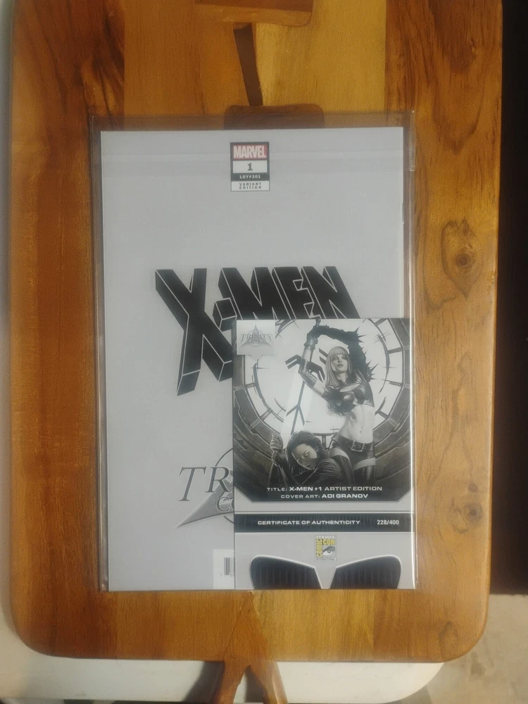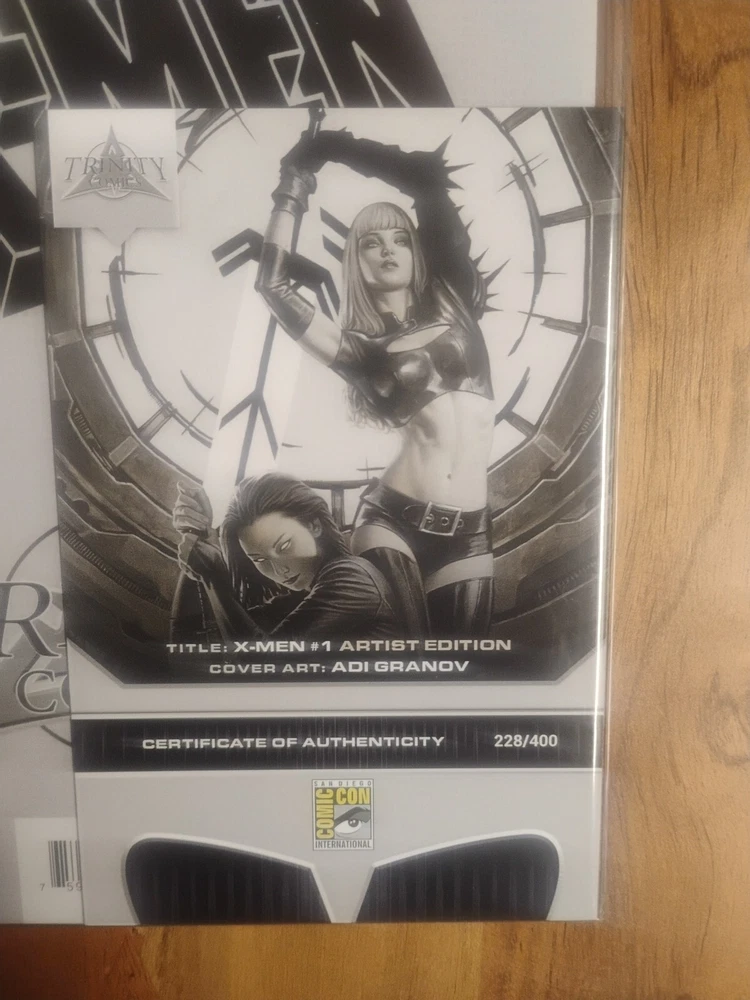 This limited edition X-Men #1 comic book, released at San Diego Comic-Con 2024, features a stunning black and white variant cover by Adi Granov. This is a must-have for any Marvel (MCU) fan and collector, as it is a rare retailer exclusive variant with a certificate of authenticity. The comic book is a single issue, English language edition published by Marvel Comics in 2024, as part of the San Diego Comic-Con Comics series. It is a modern age comic book, featuring the X-Men superhero team in an action-packed adventure. This comic book is perfect for collectors of US comics, and will make a great addition to any collection.