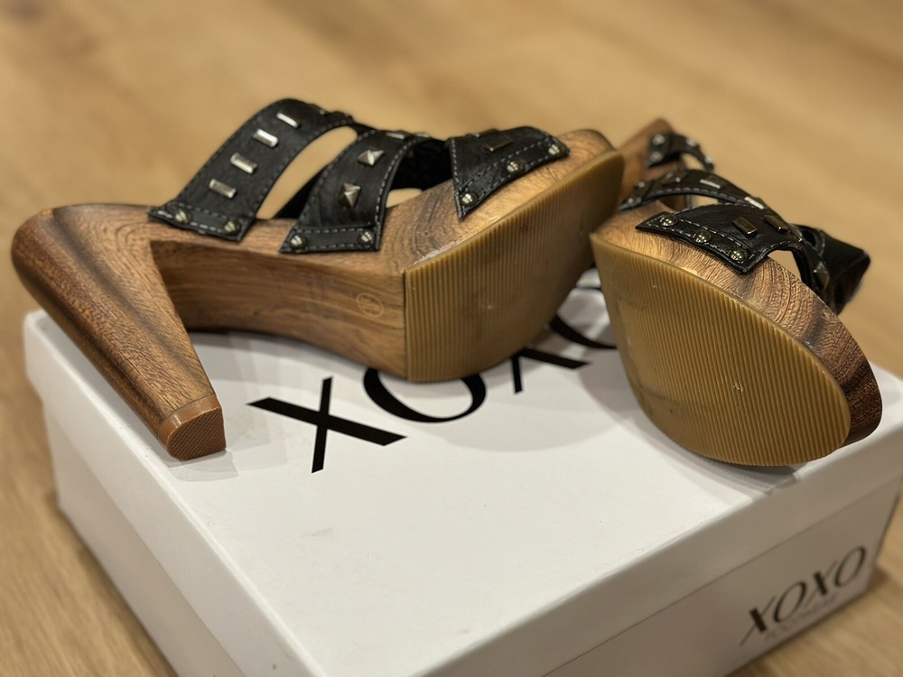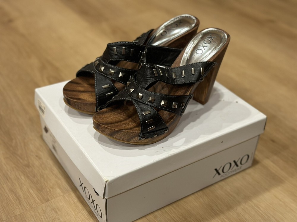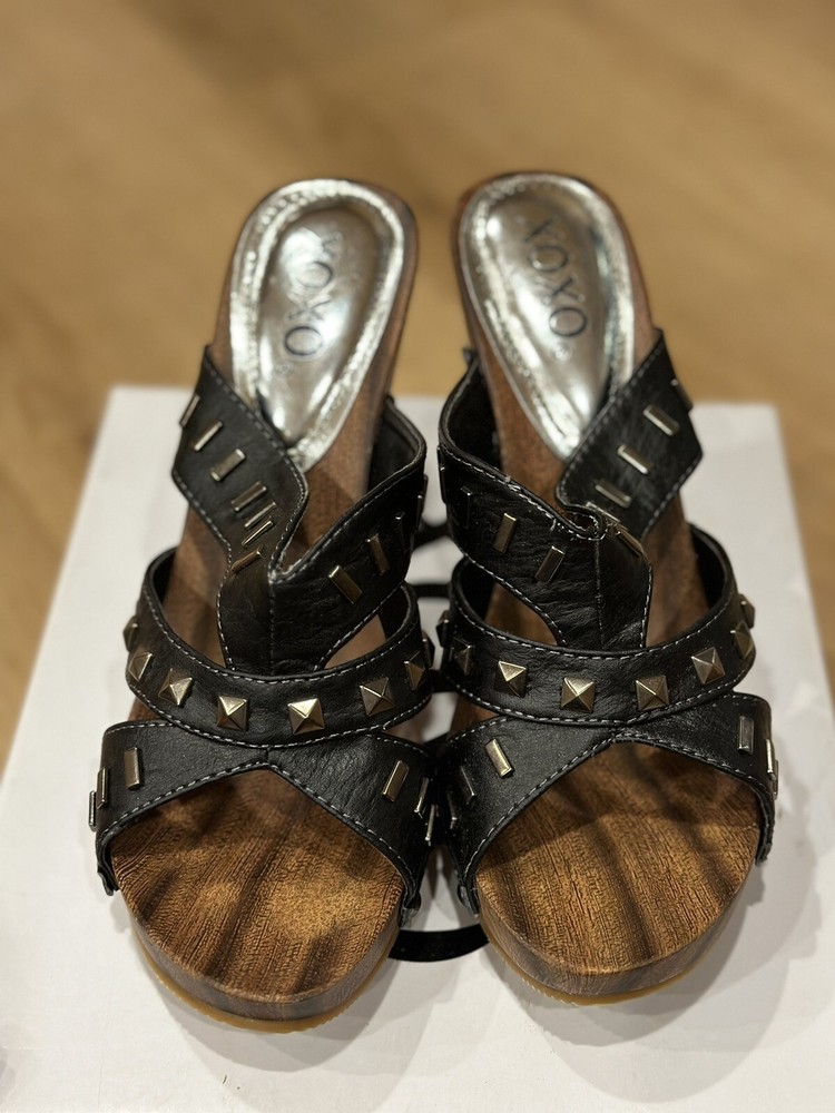 Elevate your shoe game with these stunning XOXO Delphine Studded Heels. These strappy heels feature an open toe design and a mid-height heel, perfect for any occasion - from parties to casual outings. The adjustable buckle strap ensures a comfortable fit, while the black faux leather upper material gives a sleek and stylish look. The heels are adorned with stunning studded accents, adding a touch of edginess to your outfit. These shoes come in a UK size 5, US size 7.5, and EU size 38.5, and are perfect for any fashion-forward woman. Add these XOXO Delphine Studded Heels to your shoe collection today and step out in style.